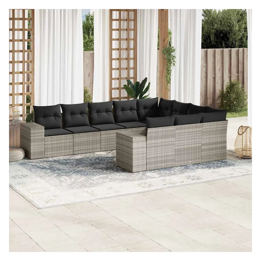 Salon de jardin avec coussins 10 pcs gris clair résine tressée