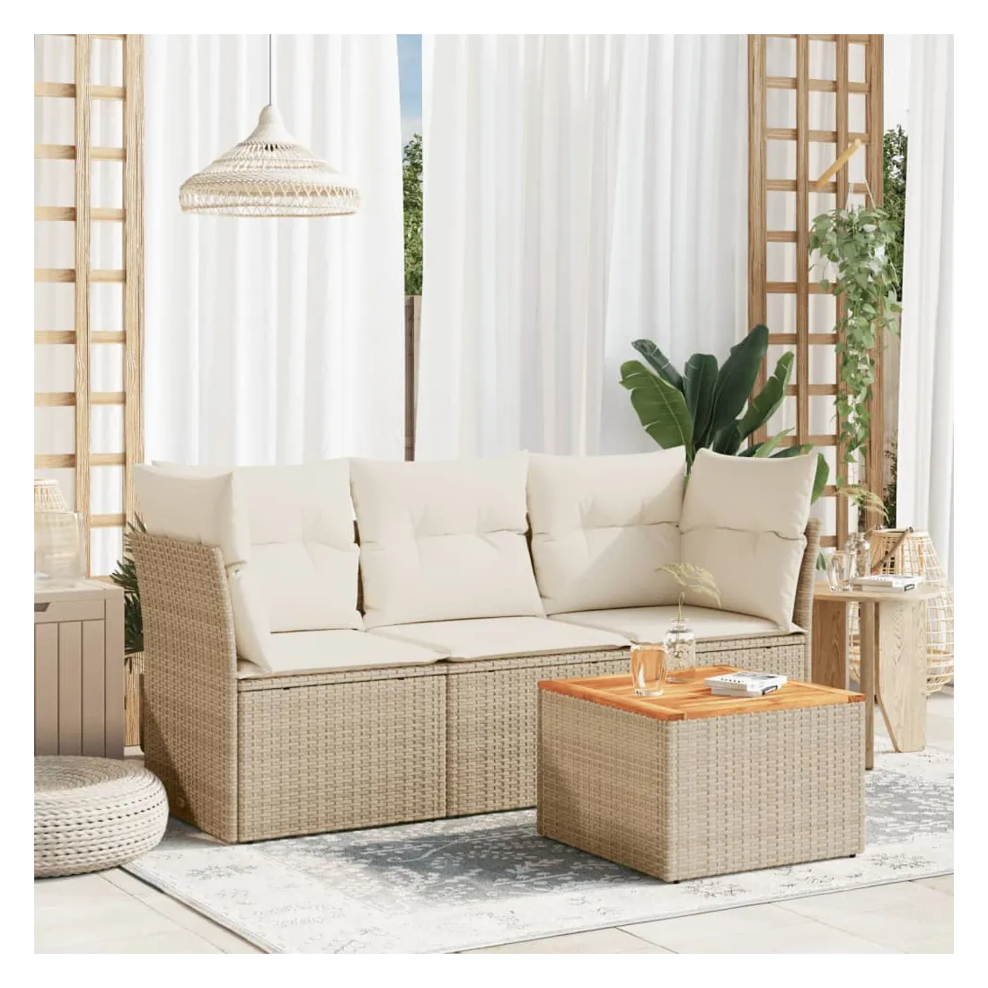 Cet ensemble de canapés de jardin est le complément parfait de votre arrière-cour, terrasse ou patio, offrant un espace confortable et accueillant pour discuter avec la famille et les amis ou simplement se détendre et profiter de l'extérieur. Matériau durable : la résine tressée, également connue sous le nom de poly rotin, est un matériau synthétique solide et nécessitant peu d'entretien qui ressemble au rotin naturel. Il est léger, facile à nettoyer et couramment utilisé pour les meubles d'extérieur en raison de sa durabilité et de ses propriétés de résistance aux intempéries.Expérience d'assise confortable : ce mobilier d'extérieur, doté de coussins épais, offre une expérience d'assise confortable.Dessus stable et facile à nettoyer : cette table de jardin a un dessus en bois d'acacia robuste, durable et facile à nettoyer avec un chiffon humide.Housse amovible et lavable : ces coussins de siège sont dotés de housses amovibles pour un lavage et un entretien faciles.Conception modulaire : cet ensemble de meubles d'extérieur a une conception modulaire, ce qui le rend complètement flexible et facile à déplacer, afin que vous puissiez créer un agencement de meubles d'extérieur personnalisé. Bon à savoir :Pour que vos meubles d'extérieur restent beaux, nous vous recommandons de les protéger avec une housse imperméable.