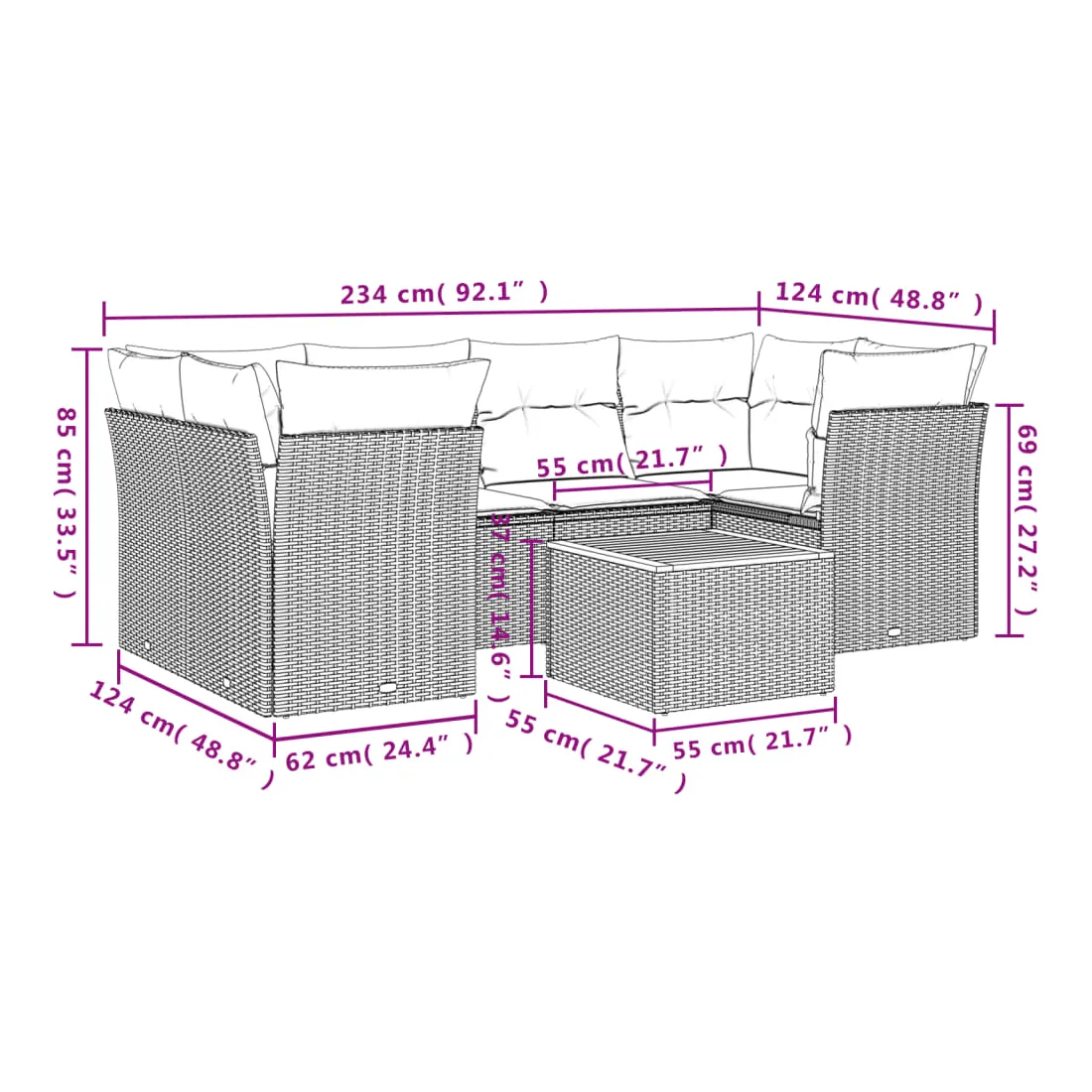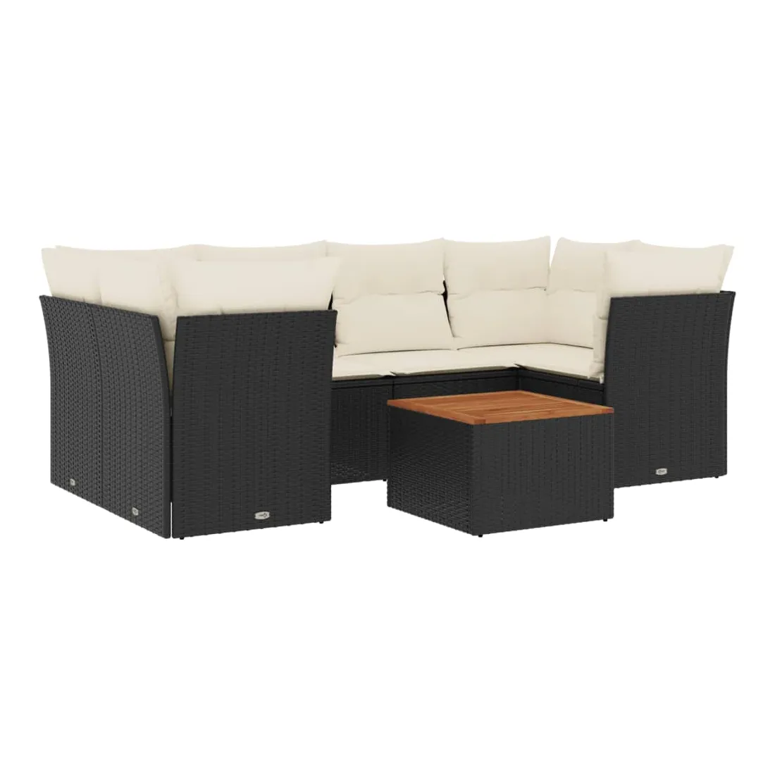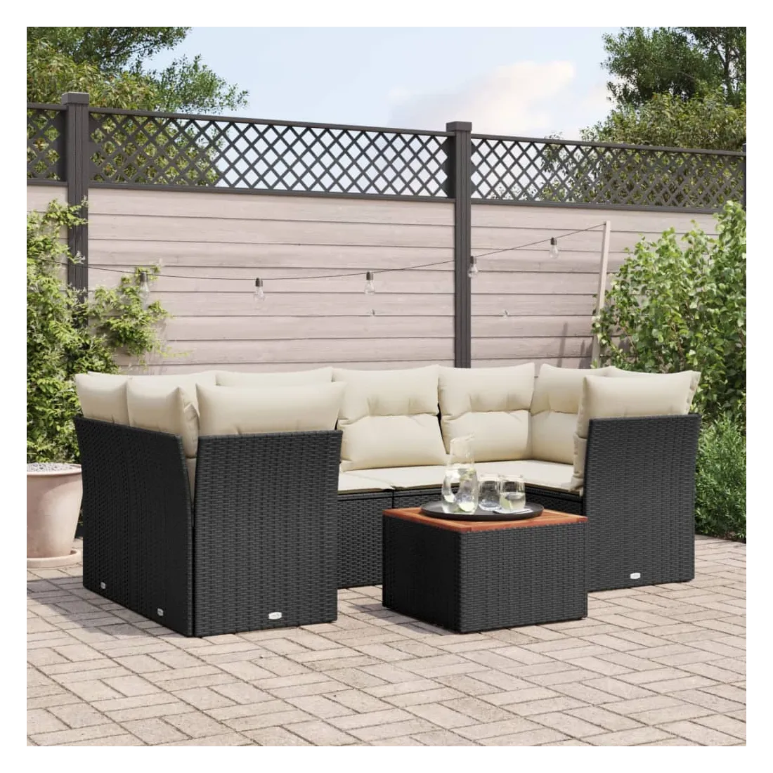 Salon de jardin 7 pcs avec coussins noir résine tressée