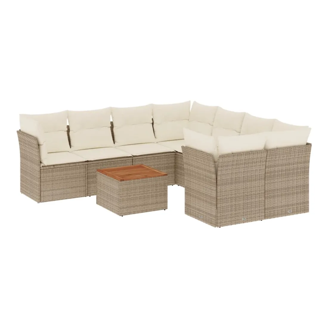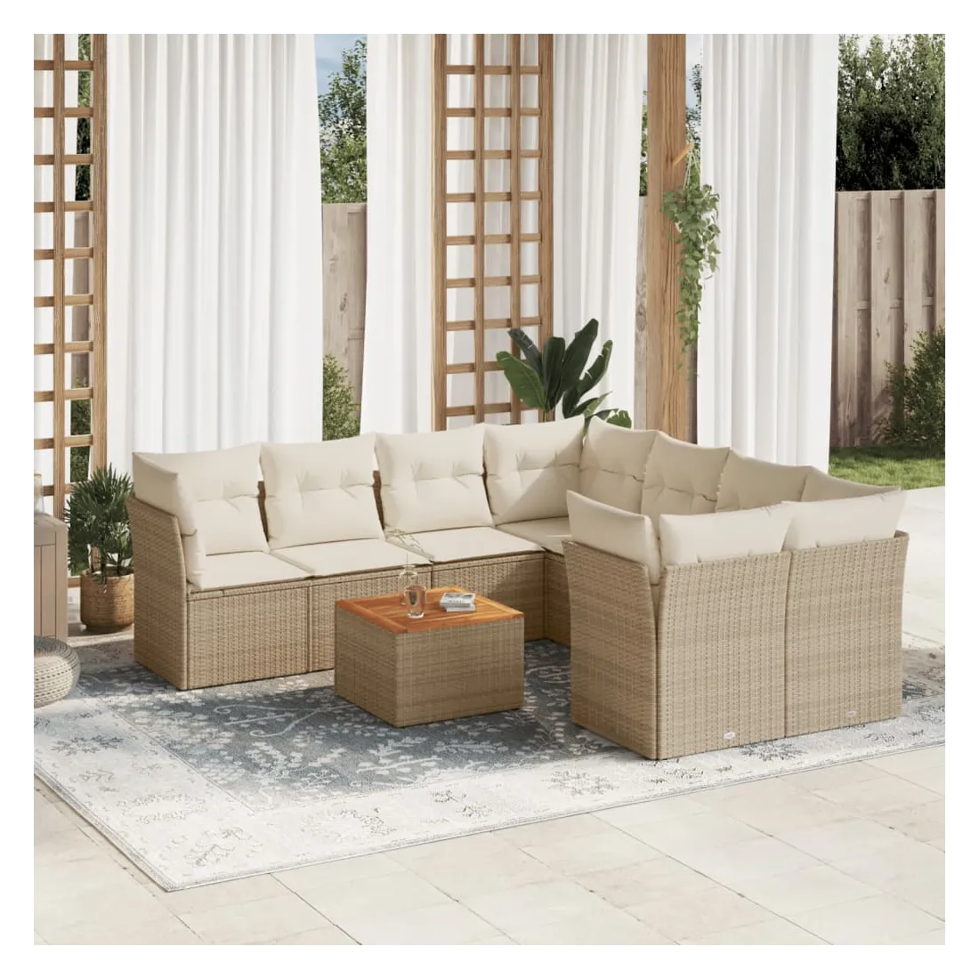 Cet ensemble de canapés de jardin est le complément parfait de votre arrière-cour, terrasse ou patio, offrant un espace confortable et accueillant pour discuter avec la famille et les amis ou simplement se détendre et profiter de l'extérieur. Matériau durable : la résine tressée, également connue sous le nom de poly rotin, est un matériau synthétique solide et nécessitant peu d'entretien qui ressemble au rotin naturel. Il est léger, facile à nettoyer et couramment utilisé pour les meubles d'extérieur en raison de sa durabilité et de ses propriétés de résistance aux intempéries.Expérience d'assise confortable : ce mobilier d'extérieur, doté de coussins épais, offre une expérience d'assise confortable.Dessus stable et facile à nettoyer : cette table de jardin a un dessus en bois d'acacia robuste, durable et facile à nettoyer avec un chiffon humide.Housse amovible et lavable : ces coussins de siège sont dotés de housses amovibles pour un lavage et un entretien faciles.Conception modulaire : cet ensemble de meubles d'extérieur a une conception modulaire, ce qui le rend complètement flexible et facile à déplacer, afin que vous puissiez créer un agencement de meubles d'extérieur personnalisé. Bon à savoir :Pour que vos meubles d'extérieur restent beaux, nous vous recommandons de les protéger avec une housse imperméable.