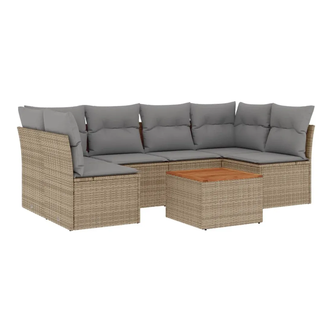 Salon de jardin avec coussins 7 pcs beige résine tressée