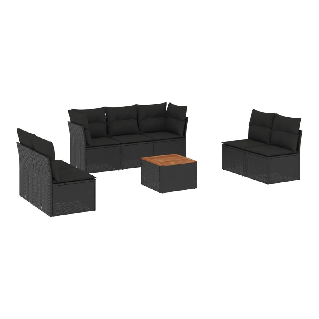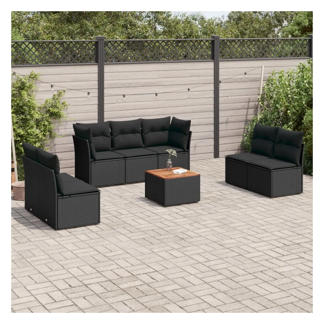 Salon de jardin 8 pcs avec coussins noir résine tressée