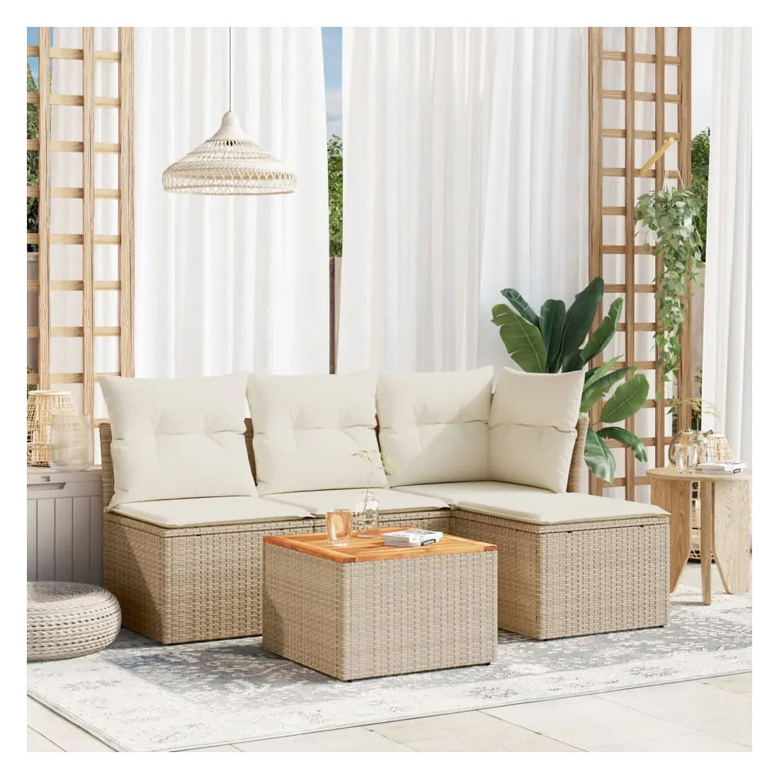 Cet ensemble de canapés de jardin est le complément parfait de votre arrière-cour, terrasse ou patio, offrant un espace confortable et accueillant pour discuter avec la famille et les amis ou simplement se détendre et profiter de l'extérieur. Matériau durable : la résine tressée, également connue sous le nom de poly rotin, est un matériau synthétique solide et nécessitant peu d'entretien qui ressemble au rotin naturel. Il est léger, facile à nettoyer et couramment utilisé pour les meubles d'extérieur en raison de sa durabilité et de ses propriétés de résistance aux intempéries.Expérience d'assise confortable : ce mobilier d'extérieur, doté de coussins épais, offre une expérience d'assise confortable.Dessus stable et facile à nettoyer : cette table de jardin a un dessus en bois d'acacia robuste, durable et facile à nettoyer avec un chiffon humide.Housse amovible et lavable : ces coussins de siège sont dotés de housses amovibles pour un lavage et un entretien faciles.Conception modulaire : cet ensemble de meubles d'extérieur a une conception modulaire, ce qui le rend complètement flexible et facile à déplacer, afin que vous puissiez créer un agencement de meubles d'extérieur personnalisé. Bon à savoir :Pour que vos meubles d'extérieur restent beaux, nous vous recommandons de les protéger avec une housse imperméable.