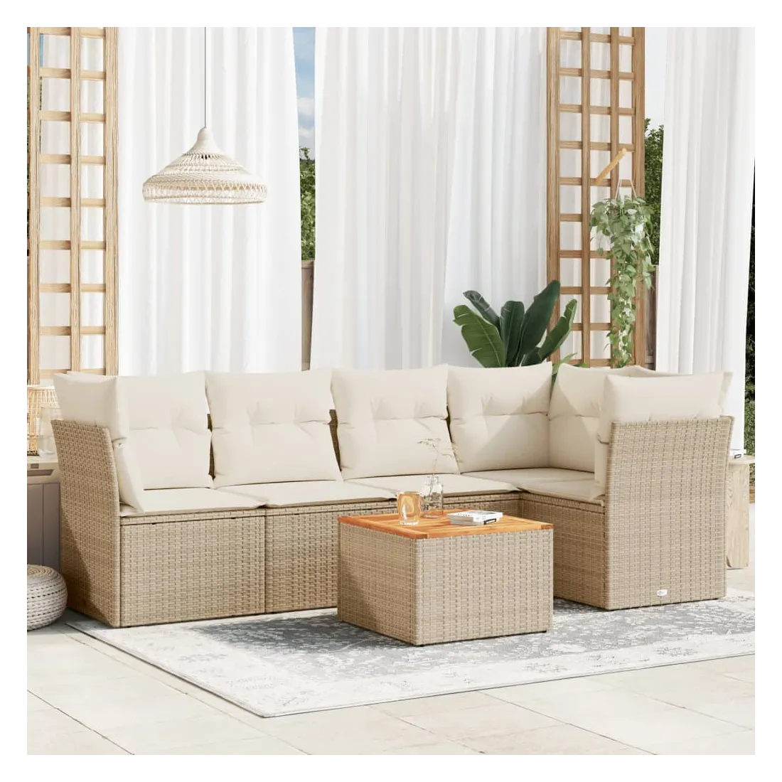 Cet ensemble de canapés de jardin est le complément parfait de votre arrière-cour, terrasse ou patio, offrant un espace confortable et accueillant pour discuter avec la famille et les amis ou simplement se détendre et profiter de l'extérieur. Matériau durable : la résine tressée, également connue sous le nom de poly rotin, est un matériau synthétique solide et nécessitant peu d'entretien qui ressemble au rotin naturel. Il est léger, facile à nettoyer et couramment utilisé pour les meubles d'extérieur en raison de sa durabilité et de ses propriétés de résistance aux intempéries.Expérience d'assise confortable : ce mobilier d'extérieur, doté de coussins épais, offre une expérience d'assise confortable.Dessus stable et facile à nettoyer : cette table de jardin a un dessus en bois d'acacia robuste, durable et facile à nettoyer avec un chiffon humide.Housse amovible et lavable : ces coussins de siège sont dotés de housses amovibles pour un lavage et un entretien faciles.Conception modulaire : cet ensemble de meubles d'extérieur a une conception modulaire, ce qui le rend complètement flexible et facile à déplacer, afin que vous puissiez créer un agencement de meubles d'extérieur personnalisé. Bon à savoir :Pour que vos meubles d'extérieur restent beaux, nous vous recommandons de les protéger avec une housse imperméable.
