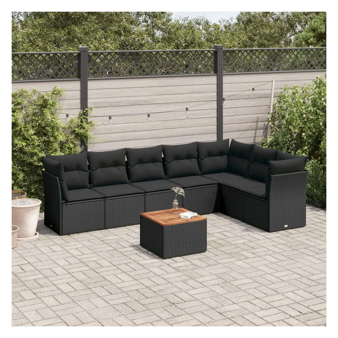 Cet ensemble de canapés de jardin est le complément parfait de votre arrière-cour, terrasse ou patio, offrant un espace confortable et accueillant pour discuter avec la famille et les amis ou simplement se détendre et profiter de l'extérieur. Matériau durable : la résine tressée, également connue sous le nom de poly rotin, est un matériau synthétique solide et nécessitant peu d'entretien qui ressemble au rotin naturel. Il est léger, facile à nettoyer et couramment utilisé pour les meubles d'extérieur en raison de sa durabilité et de ses propriétés de résistance aux intempéries.Expérience d'assise confortable : ce mobilier d'extérieur, doté de coussins épais, offre une expérience d'assise confortable.Dessus stable et facile à nettoyer : cette table de jardin a un dessus en bois d'acacia robuste, durable et facile à nettoyer avec un chiffon humide.Housse amovible et lavable : ces coussins de siège sont dotés de housses amovibles pour un lavage et un entretien faciles.Conception modulaire : cet ensemble de meubles d'extérieur a une conception modulaire, ce qui le rend complètement flexible et facile à déplacer, afin que vous puissiez créer un agencement de meubles d'extérieur personnalisé. Bon à savoir :Pour que vos meubles d'extérieur restent beaux, nous vous recommandons de les protéger avec une housse imperméable.