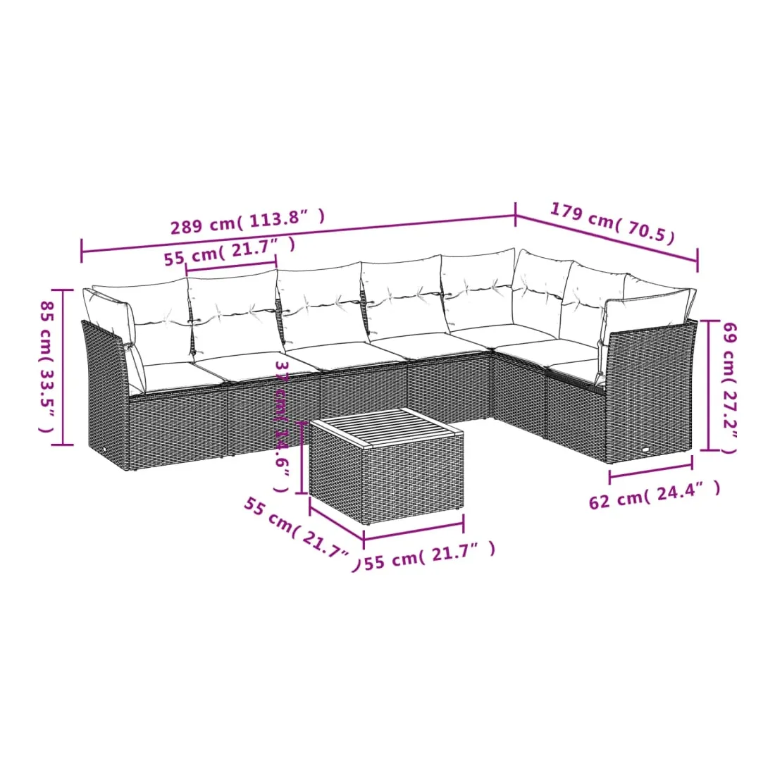 - 7 x coussin de siège avec housse amovible et lavable