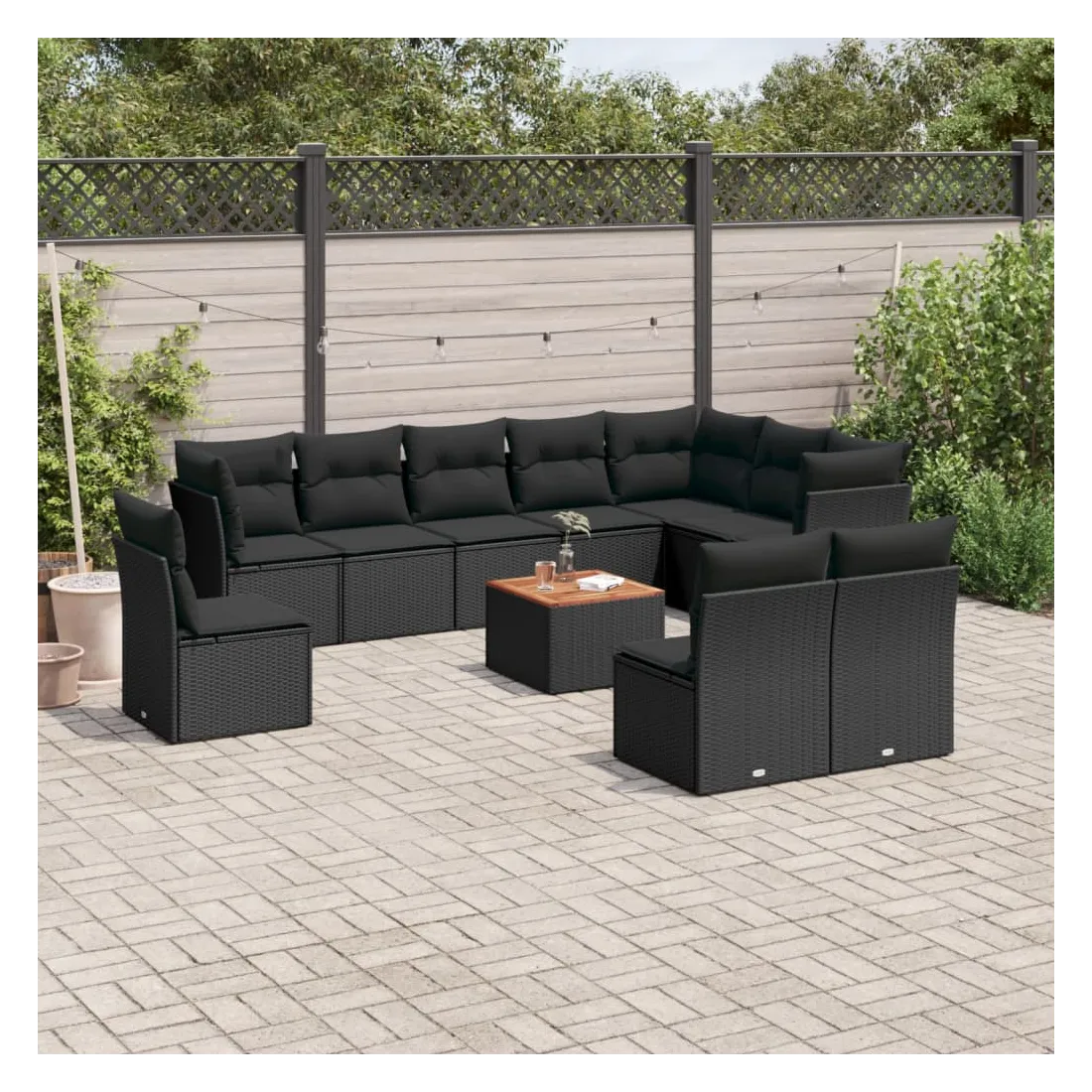 Cet ensemble de canapés de jardin est le complément parfait de votre arrière-cour, terrasse ou patio, offrant un espace confortable et accueillant pour discuter avec la famille et les amis ou simplement se détendre et profiter de l'extérieur. Matériau durable : la résine tressée, également connue sous le nom de poly rotin, est un matériau synthétique solide et nécessitant peu d'entretien qui ressemble au rotin naturel. Il est léger, facile à nettoyer et couramment utilisé pour les meubles d'extérieur en raison de sa durabilité et de ses propriétés de résistance aux intempéries.Expérience d'assise confortable : ce mobilier d'extérieur, doté de coussins épais, offre une expérience d'assise confortable.Dessus stable et facile à nettoyer : cette table de jardin a un dessus en bois d'acacia robuste, durable et facile à nettoyer avec un chiffon humide.Housse amovible et lavable : ces coussins de siège sont dotés de housses amovibles pour un lavage et un entretien faciles.Conception modulaire : cet ensemble de meubles d'extérieur a une conception modulaire, ce qui le rend complètement flexible et facile à déplacer, afin que vous puissiez créer un agencement de meubles d'extérieur personnalisé. Bon à savoir :Pour que vos meubles d'extérieur restent beaux, nous vous recommandons de les protéger avec une housse imperméable.