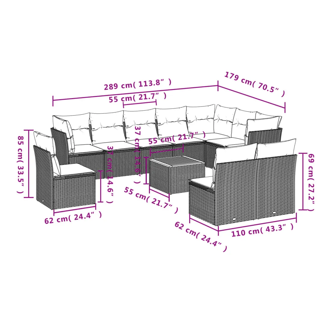 - Dimensions du coussin de dossier : 55 x 45 x 13 cm (L x l x é)