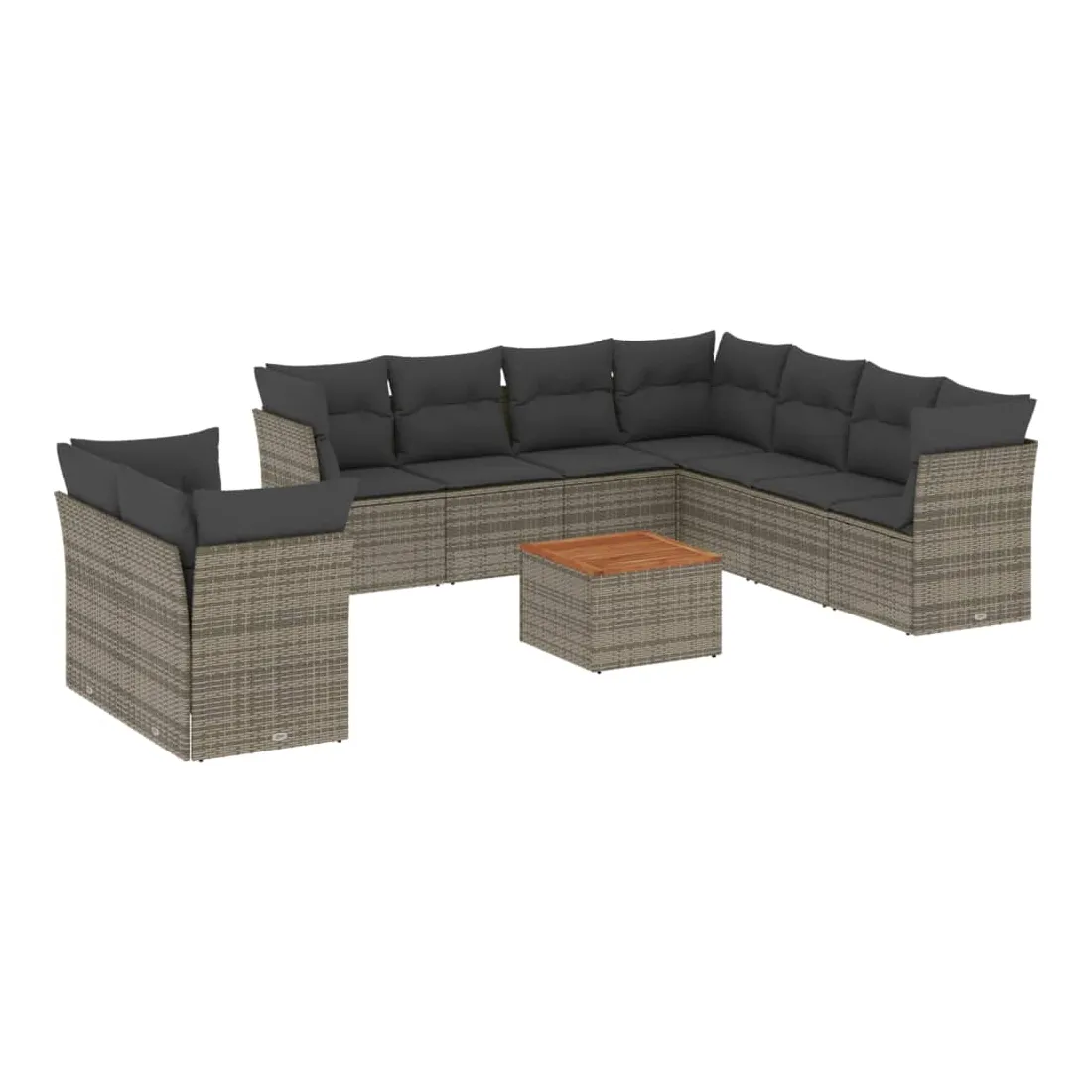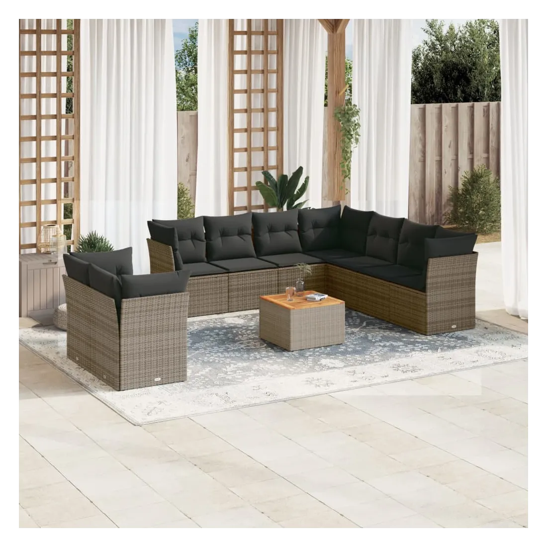 Cet ensemble de canapés de jardin est le complément parfait de votre arrière-cour, terrasse ou patio, offrant un espace confortable et accueillant pour discuter avec la famille et les amis ou simplement se détendre et profiter de l'extérieur. Matériau durable : la résine tressée, également connue sous le nom de poly rotin, est un matériau synthétique solide et nécessitant peu d'entretien qui ressemble au rotin naturel. Il est léger, facile à nettoyer et couramment utilisé pour les meubles d'extérieur en raison de sa durabilité et de ses propriétés de résistance aux intempéries.Expérience d'assise confortable : ce mobilier d'extérieur, doté de coussins épais, offre une expérience d'assise confortable.Dessus stable et facile à nettoyer : cette table de jardin a un dessus en bois d'acacia robuste, durable et facile à nettoyer avec un chiffon humide.Housse amovible et lavable : ces coussins de siège sont dotés de housses amovibles pour un lavage et un entretien faciles.Conception modulaire : cet ensemble de meubles d'extérieur a une conception modulaire, ce qui le rend complètement flexible et facile à déplacer, afin que vous puissiez créer un agencement de meubles d'extérieur personnalisé. Bon à savoir :Pour que vos meubles d'extérieur restent beaux, nous vous recommandons de les protéger avec une housse imperméable.