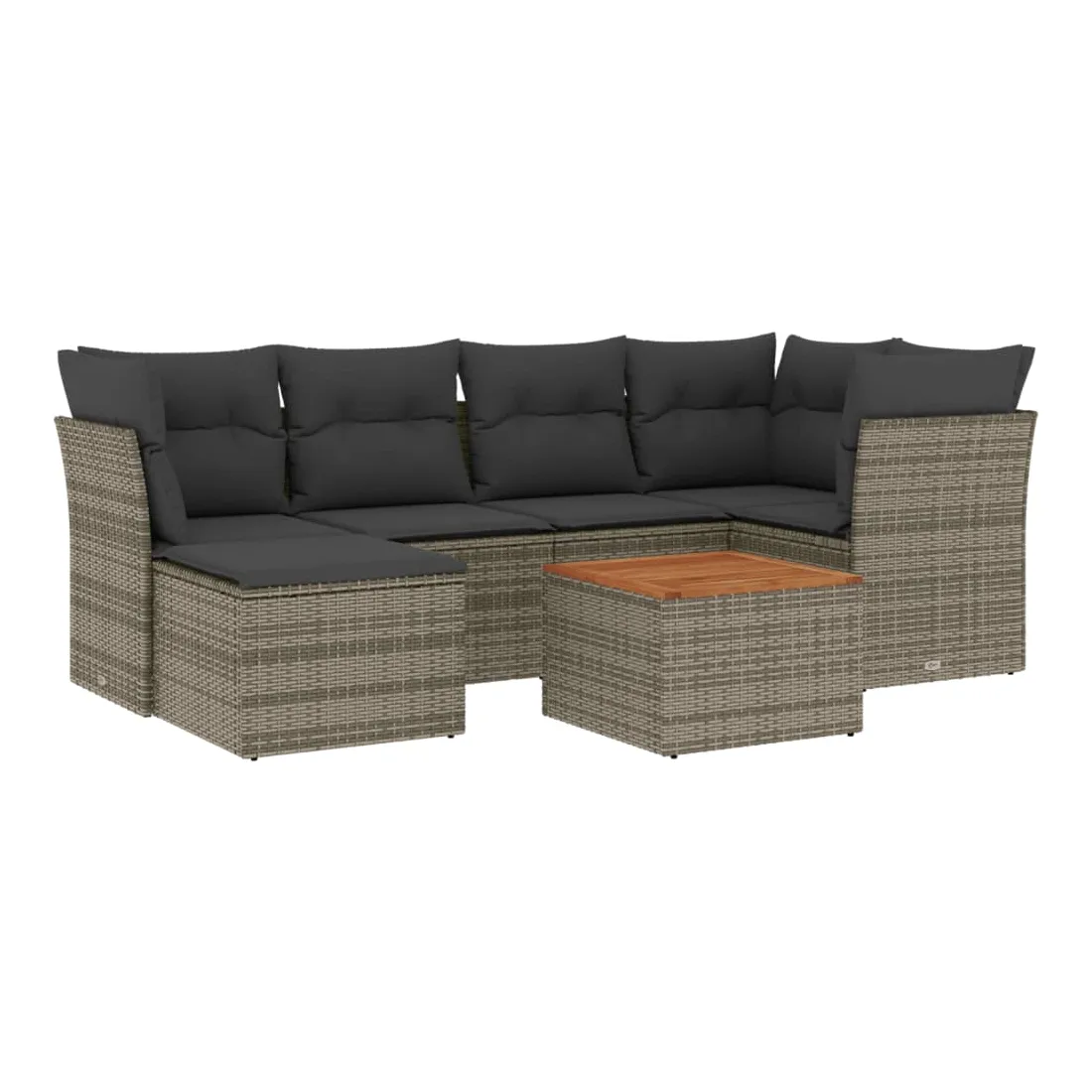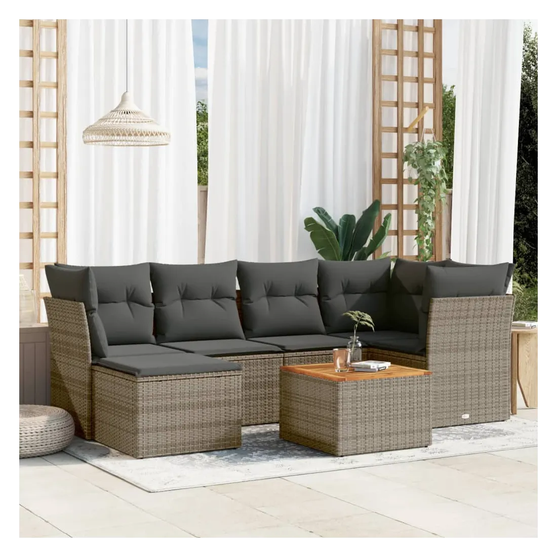 Cet ensemble de canapés de jardin est le complément parfait de votre arrière-cour, terrasse ou patio, offrant un espace confortable et accueillant pour discuter avec la famille et les amis ou simplement se détendre et profiter de l'extérieur. Matériau durable : la résine tressée, également connue sous le nom de poly rotin, est un matériau synthétique solide et nécessitant peu d'entretien qui ressemble au rotin naturel. Il est léger, facile à nettoyer et couramment utilisé pour les meubles d'extérieur en raison de sa durabilité et de ses propriétés de résistance aux intempéries.Expérience d'assise confortable : ce mobilier d'extérieur, doté de coussins épais, offre une expérience d'assise confortable.Dessus stable et facile à nettoyer : cette table de jardin a un dessus en bois d'acacia robuste, durable et facile à nettoyer avec un chiffon humide.Housse amovible et lavable : ces coussins de siège sont dotés de housses amovibles pour un lavage et un entretien faciles.Conception modulaire : cet ensemble de meubles d'extérieur a une conception modulaire, ce qui le rend complètement flexible et facile à déplacer, afin que vous puissiez créer un agencement de meubles d'extérieur personnalisé. Bon à savoir :Pour que vos meubles d'extérieur restent beaux, nous vous recommandons de les protéger avec une housse imperméable.