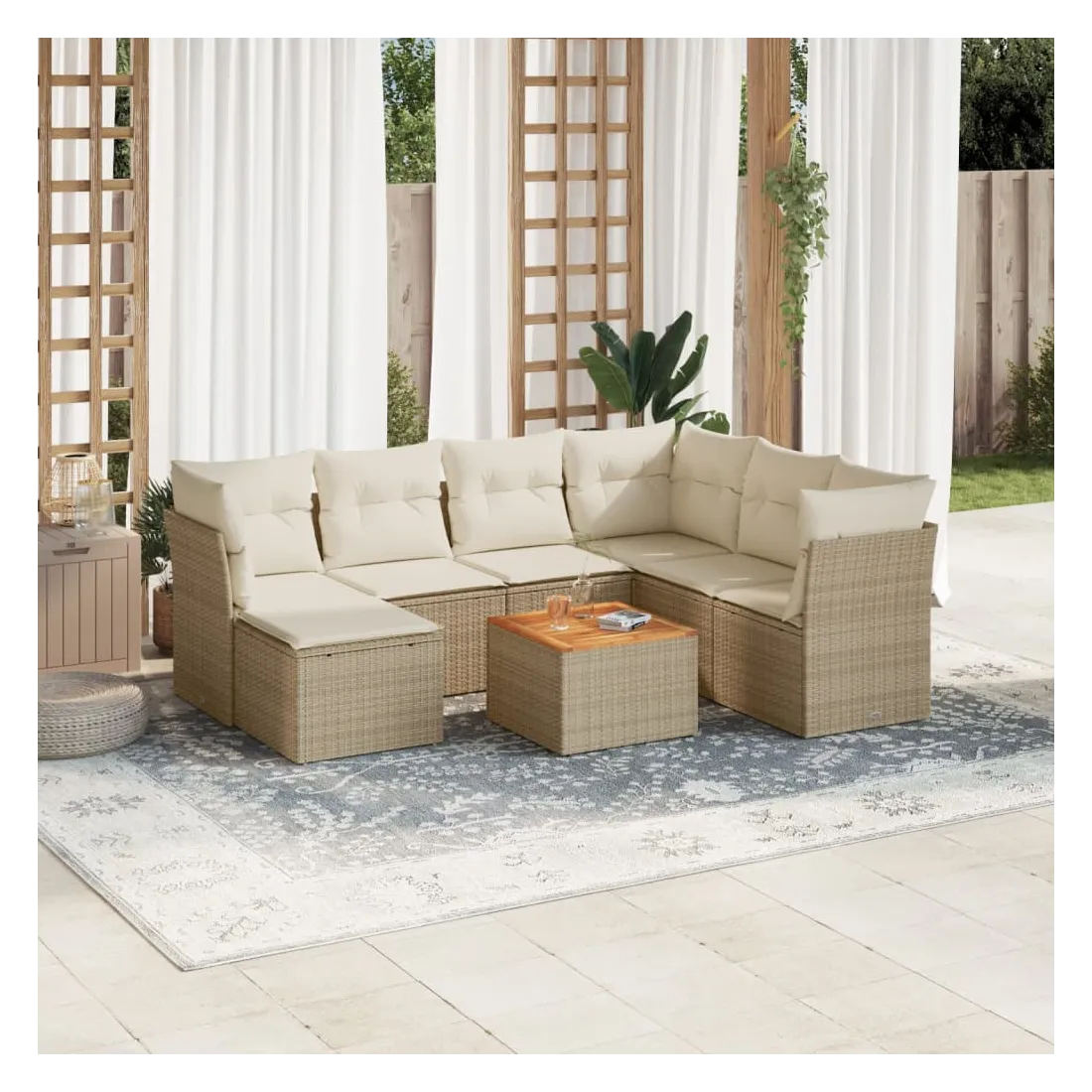 Cet ensemble de canapés de jardin est le complément parfait de votre arrière-cour, terrasse ou patio, offrant un espace confortable et accueillant pour discuter avec la famille et les amis ou simplement se détendre et profiter de l'extérieur. Matériau durable : la résine tressée, également connue sous le nom de poly rotin, est un matériau synthétique solide et nécessitant peu d'entretien qui ressemble au rotin naturel. Il est léger, facile à nettoyer et couramment utilisé pour les meubles d'extérieur en raison de sa durabilité et de ses propriétés de résistance aux intempéries.Expérience d'assise confortable : ce mobilier d'extérieur, doté de coussins épais, offre une expérience d'assise confortable.Dessus stable et facile à nettoyer : cette table de jardin a un dessus en bois d'acacia robuste, durable et facile à nettoyer avec un chiffon humide.Housse amovible et lavable : ces coussins de siège sont dotés de housses amovibles pour un lavage et un entretien faciles.Conception modulaire : cet ensemble de meubles d'extérieur a une conception modulaire, ce qui le rend complètement flexible et facile à déplacer, afin que vous puissiez créer un agencement de meubles d'extérieur personnalisé. Bon à savoir :Pour que vos meubles d'extérieur restent beaux, nous vous recommandons de les protéger avec une housse imperméable.