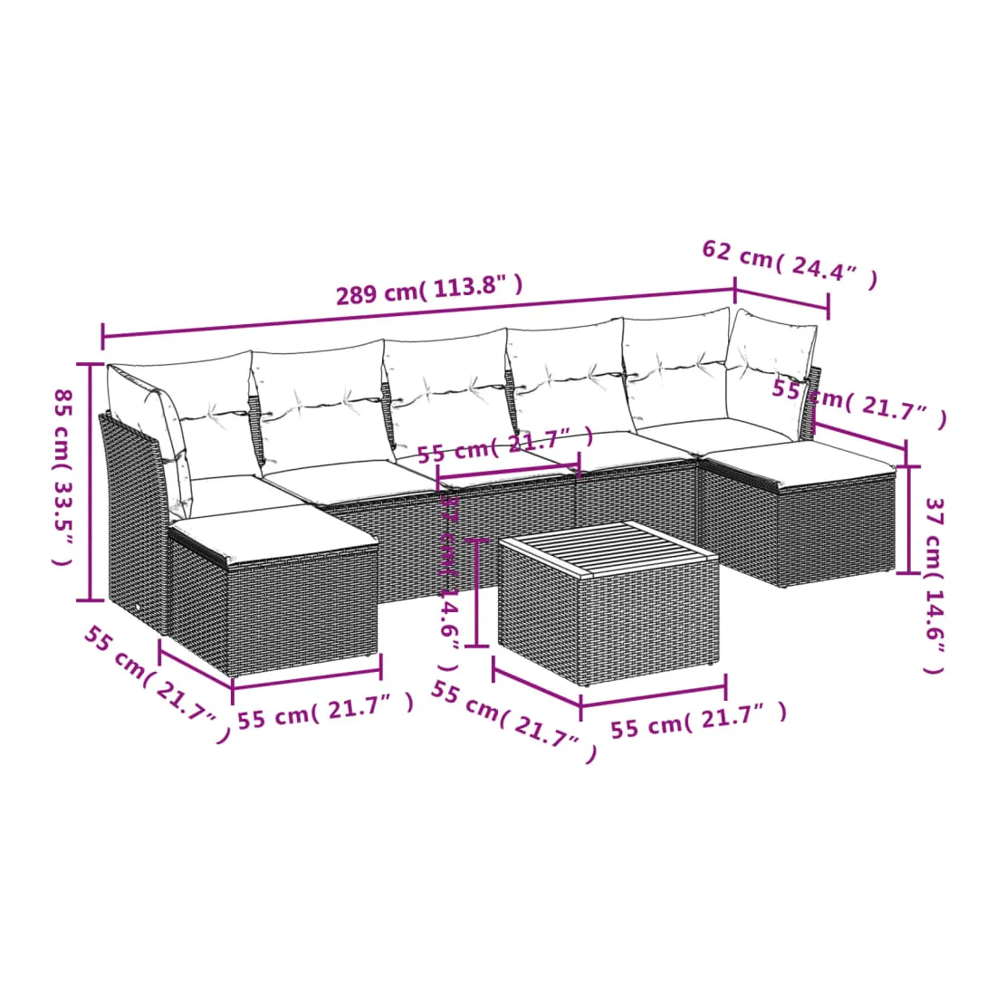 - 7 x coussin de siège avec housse amovible et lavable