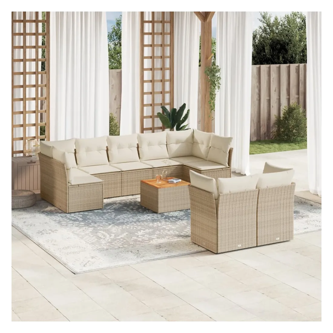 Salon de jardin avec coussins 10 pcs beige résine tressée