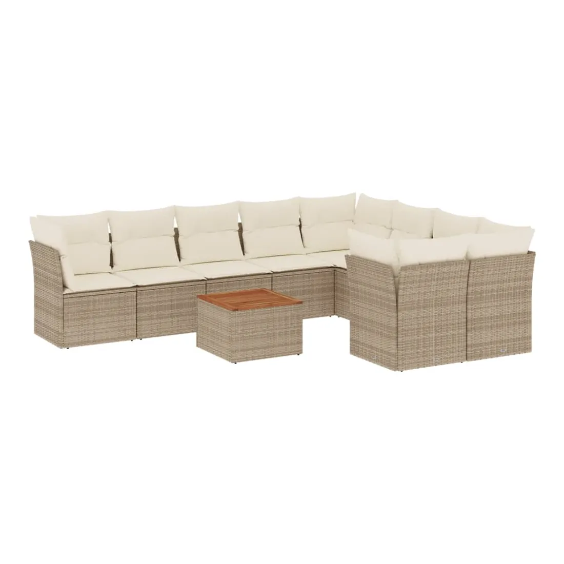Salon de jardin avec coussins 10 pcs beige résine tressée