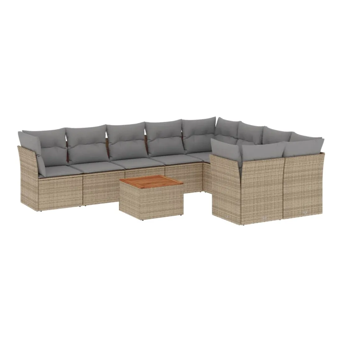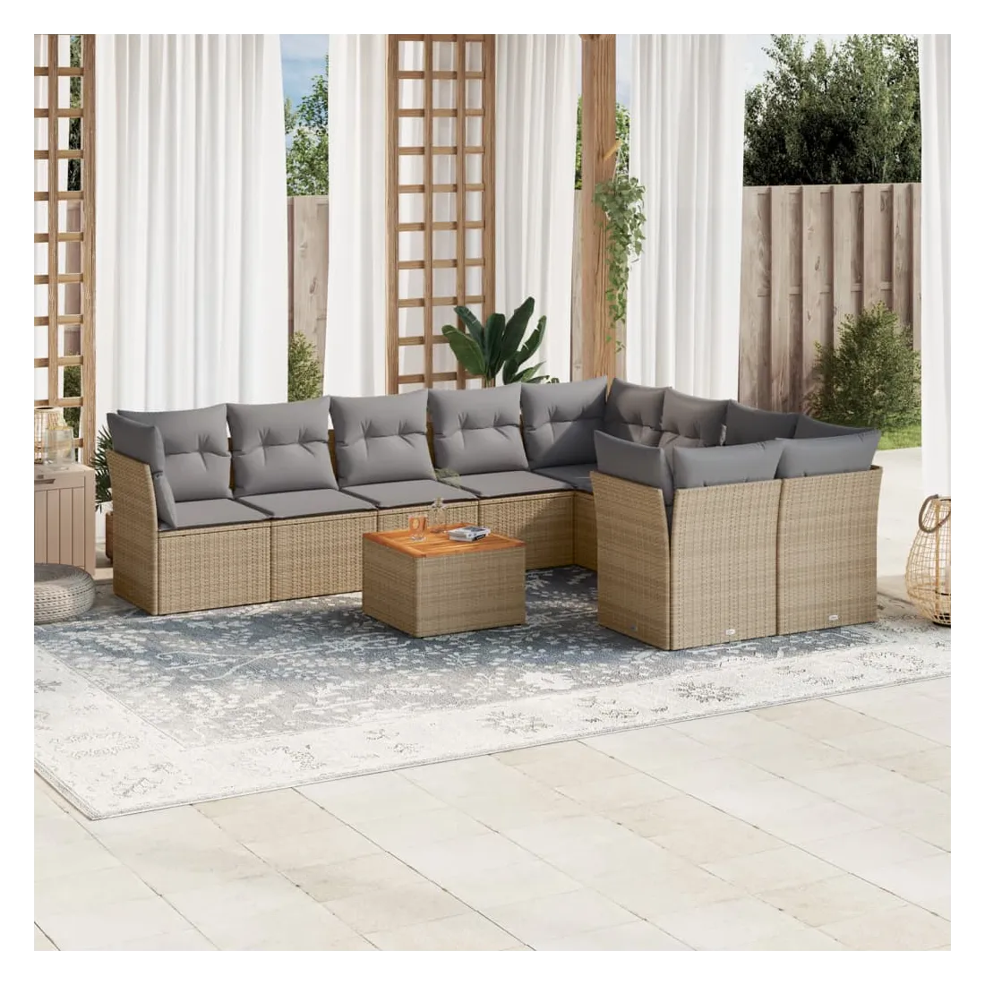 Salon de jardin avec coussins 10 pcs beige résine tressée