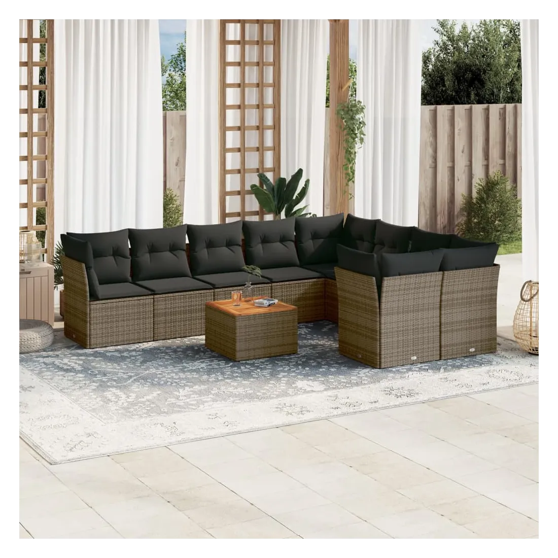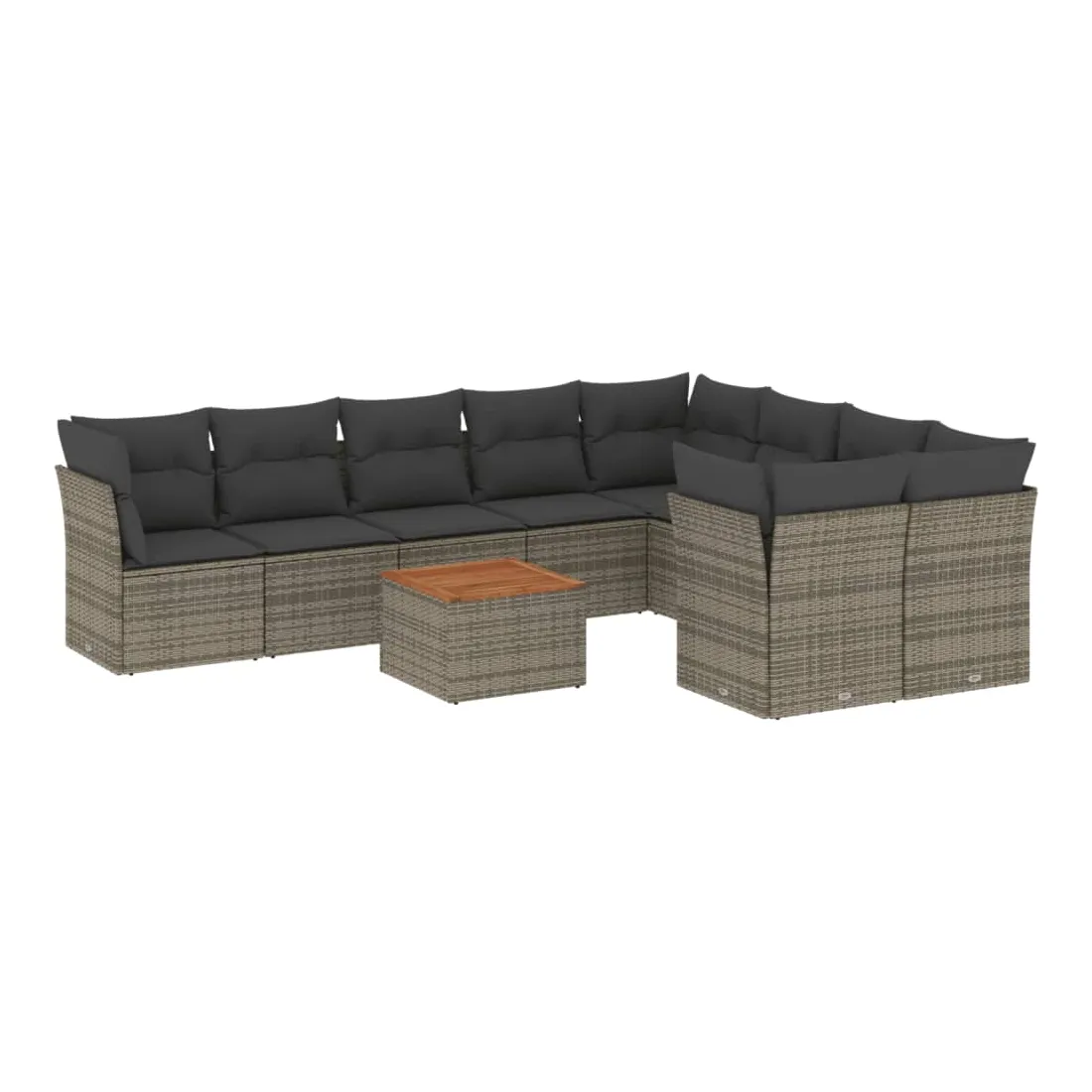 Salon de jardin avec coussins 10 pcs gris résine tressée