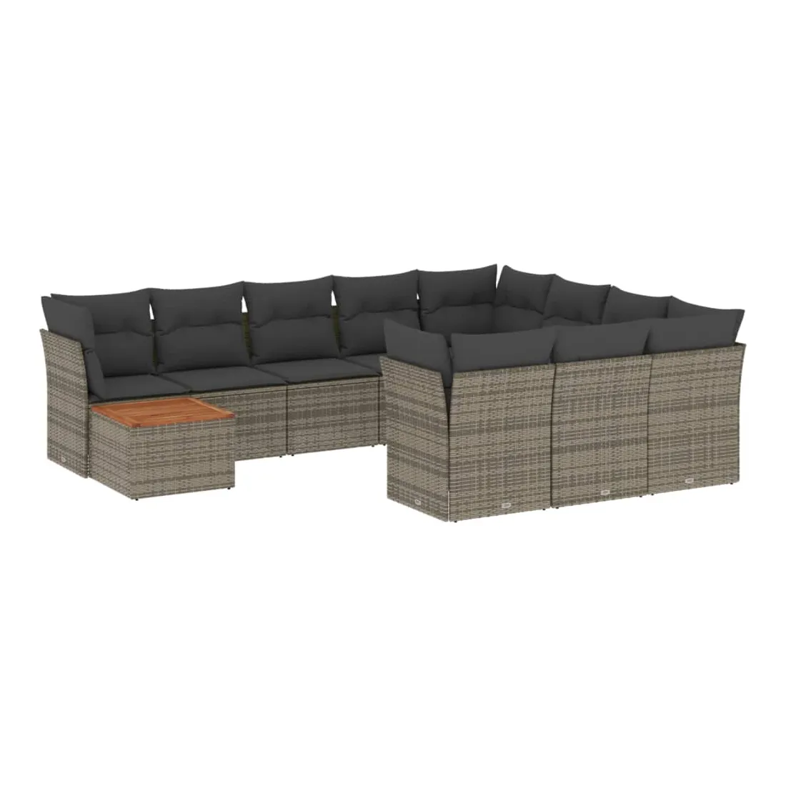 Salon de jardin 11 pcs avec coussins gris résine tressée