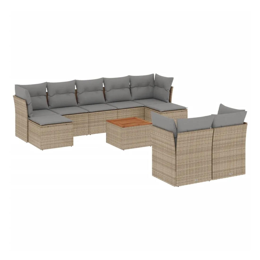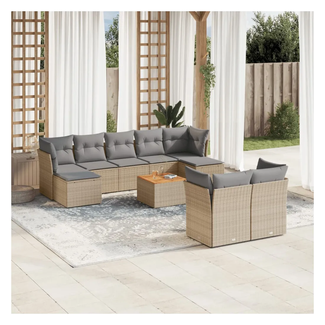 Cet ensemble de canapés de jardin est le complément parfait de votre arrière-cour, terrasse ou patio, offrant un espace confortable et accueillant pour discuter avec la famille et les amis ou simplement se détendre et profiter de l'extérieur. Matériau durable : la résine tressée, également connue sous le nom de poly rotin, est un matériau synthétique solide et nécessitant peu d'entretien qui ressemble au rotin naturel. Il est léger, facile à nettoyer et couramment utilisé pour les meubles d'extérieur en raison de sa durabilité et de ses propriétés de résistance aux intempéries.Expérience d'assise confortable : ce mobilier d'extérieur, doté de coussins épais, offre une expérience d'assise confortable.Dessus stable et facile à nettoyer : cette table de jardin a un dessus en bois d'acacia robuste, durable et facile à nettoyer avec un chiffon humide.Housse amovible et lavable : ces coussins de siège sont dotés de housses amovibles pour un lavage et un entretien faciles.Conception modulaire : cet ensemble de meubles d'extérieur a une conception modulaire, ce qui le rend complètement flexible et facile à déplacer, afin que vous puissiez créer un agencement de meubles d'extérieur personnalisé. Bon à savoir :Pour que vos meubles d'extérieur restent beaux, nous vous recommandons de les protéger avec une housse imperméable.