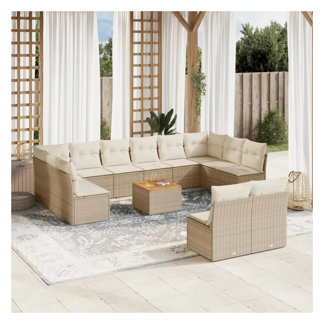 Cet ensemble de canapés de jardin est le complément parfait de votre arrière-cour, terrasse ou patio, offrant un espace confortable et accueillant pour discuter avec la famille et les amis ou simplement se détendre et profiter de l'extérieur. Matériau durable : la résine tressée, également connue sous le nom de poly rotin, est un matériau synthétique solide et nécessitant peu d'entretien qui ressemble au rotin naturel. Il est léger, facile à nettoyer et couramment utilisé pour les meubles d'extérieur en raison de sa durabilité et de ses propriétés de résistance aux intempéries.Expérience d'assise confortable : ce mobilier d'extérieur, doté de coussins épais, offre une expérience d'assise confortable.Dessus stable et facile à nettoyer : cette table de jardin a un dessus en bois d'acacia robuste, durable et facile à nettoyer avec un chiffon humide.Housse amovible et lavable : ces coussins de siège sont dotés de housses amovibles pour un lavage et un entretien faciles.Conception modulaire : cet ensemble de meubles d'extérieur a une conception modulaire, ce qui le rend complètement flexible et facile à déplacer, afin que vous puissiez créer un agencement de meubles d'extérieur personnalisé. Bon à savoir :Pour que vos meubles d'extérieur restent beaux, nous vous recommandons de les protéger avec une housse imperméable.