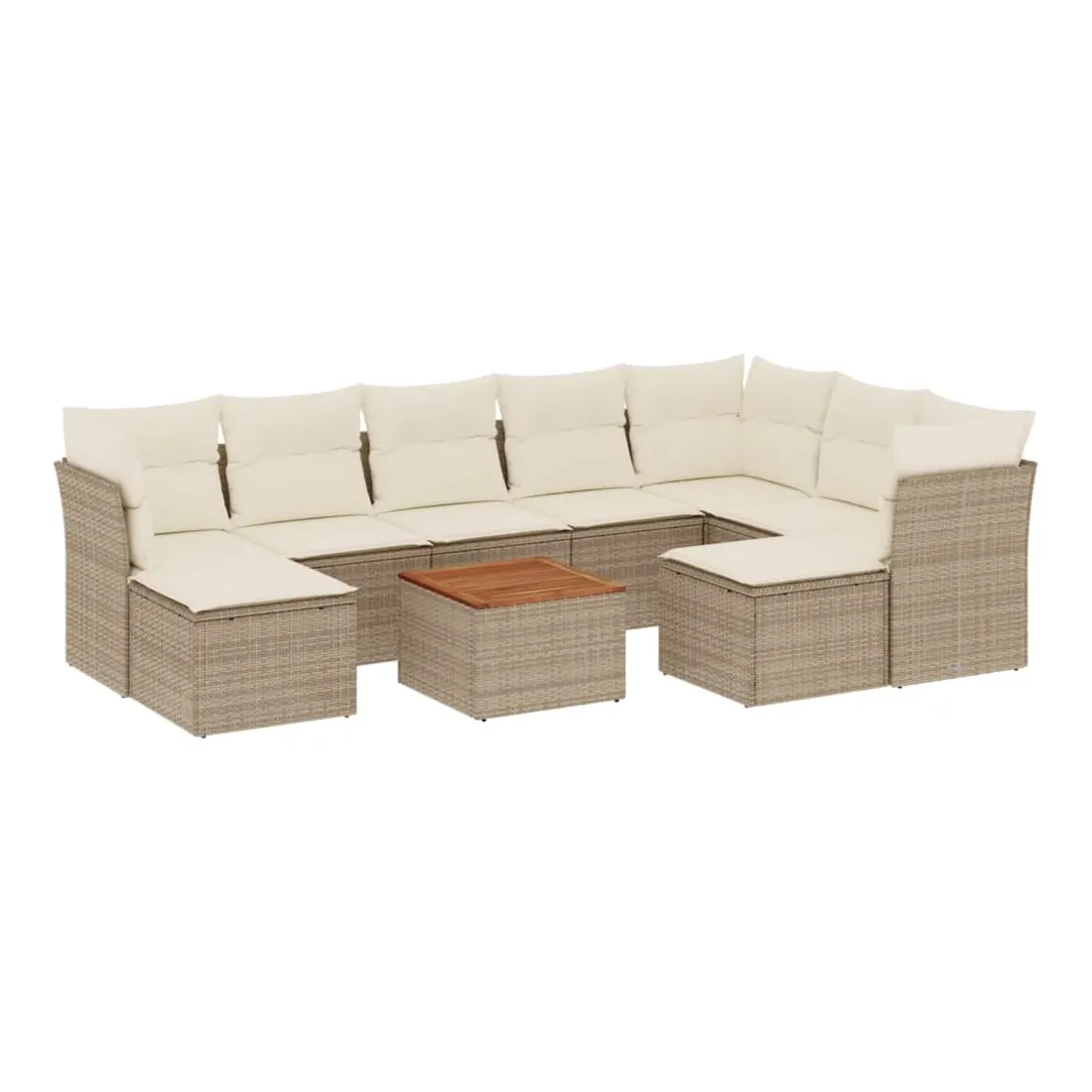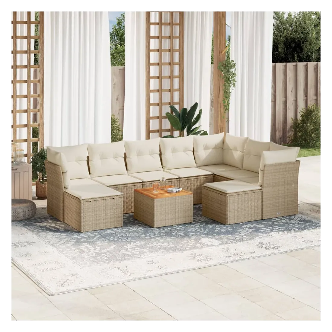 Cet ensemble de canapés de jardin est le complément parfait de votre arrière-cour, terrasse ou patio, offrant un espace confortable et accueillant pour discuter avec la famille et les amis ou simplement se détendre et profiter de l'extérieur. Matériau durable : la résine tressée, également connue sous le nom de poly rotin, est un matériau synthétique solide et nécessitant peu d'entretien qui ressemble au rotin naturel. Il est léger, facile à nettoyer et couramment utilisé pour les meubles d'extérieur en raison de sa durabilité et de ses propriétés de résistance aux intempéries.Expérience d'assise confortable : ce mobilier d'extérieur, doté de coussins épais, offre une expérience d'assise confortable.Dessus stable et facile à nettoyer : cette table de jardin a un dessus en bois d'acacia robuste, durable et facile à nettoyer avec un chiffon humide.Housse amovible et lavable : ces coussins de siège sont dotés de housses amovibles pour un lavage et un entretien faciles.Conception modulaire : cet ensemble de meubles d'extérieur a une conception modulaire, ce qui le rend complètement flexible et facile à déplacer, afin que vous puissiez créer un agencement de meubles d'extérieur personnalisé. Bon à savoir :Pour que vos meubles d'extérieur restent beaux, nous vous recommandons de les protéger avec une housse imperméable.