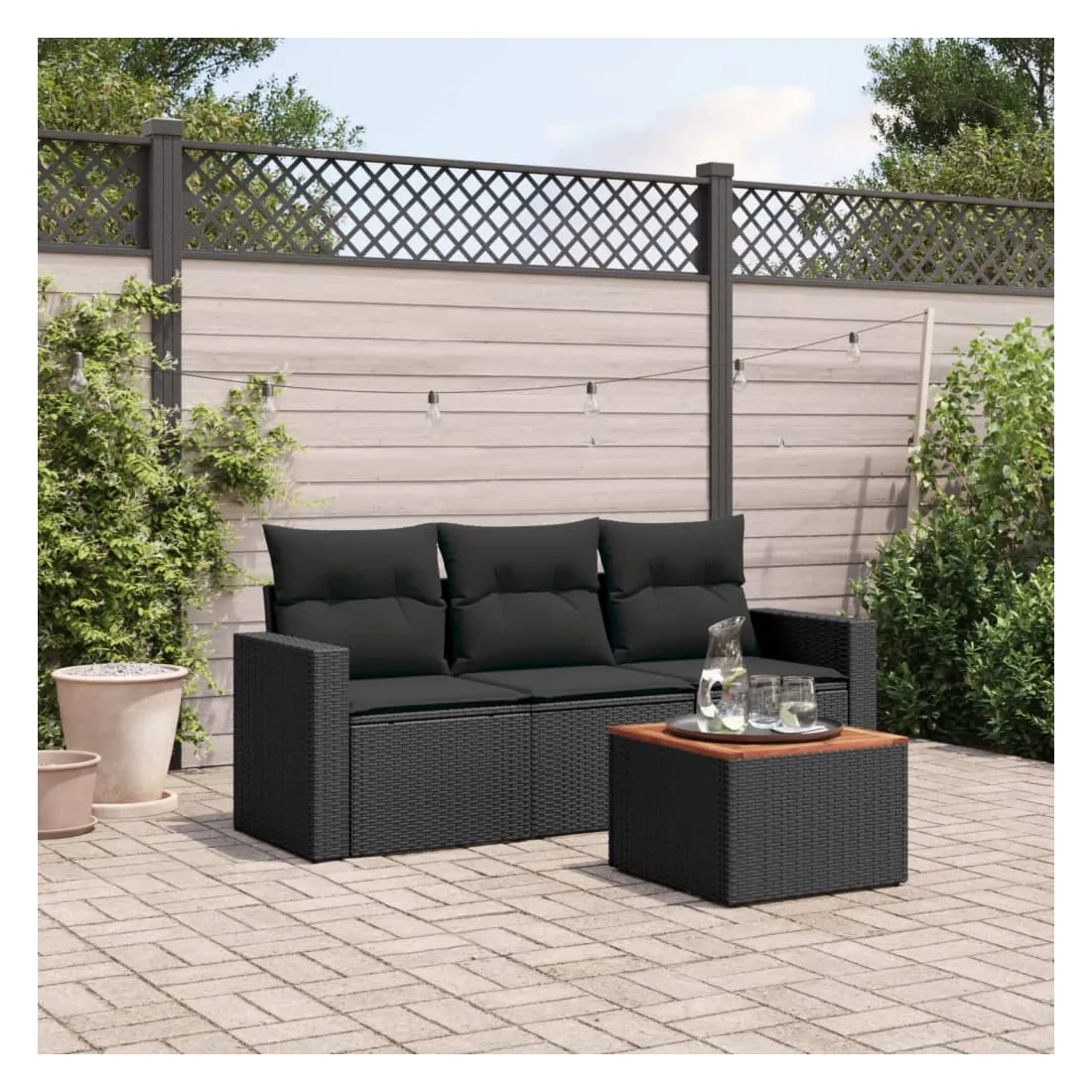 Cet ensemble de canapés de jardin est le complément parfait de votre arrière-cour, terrasse ou patio, offrant un espace confortable et accueillant pour discuter avec la famille et les amis ou simplement se détendre et profiter de l'extérieur. Matériau durable : la résine tressée, également connue sous le nom de poly rotin, est un matériau synthétique solide et nécessitant peu d'entretien qui ressemble au rotin naturel. Il est léger, facile à nettoyer et couramment utilisé pour les meubles d'extérieur en raison de sa durabilité et de ses propriétés de résistance aux intempéries.Expérience d'assise confortable : ce mobilier d'extérieur, doté de coussins épais, offre une expérience d'assise confortable.Dessus stable et facile à nettoyer : cette table de jardin a un dessus en bois d'acacia robuste, durable et facile à nettoyer avec un chiffon humide.Housse amovible et lavable : ces coussins de siège sont dotés de housses amovibles pour un lavage et un entretien faciles.Conception modulaire : cet ensemble de meubles d'extérieur a une conception modulaire, ce qui le rend complètement flexible et facile à déplacer, afin que vous puissiez créer un agencement de meubles d'extérieur personnalisé. Bon à savoir :Pour que vos meubles d'extérieur restent beaux, nous vous recommandons de les protéger avec une housse imperméable.