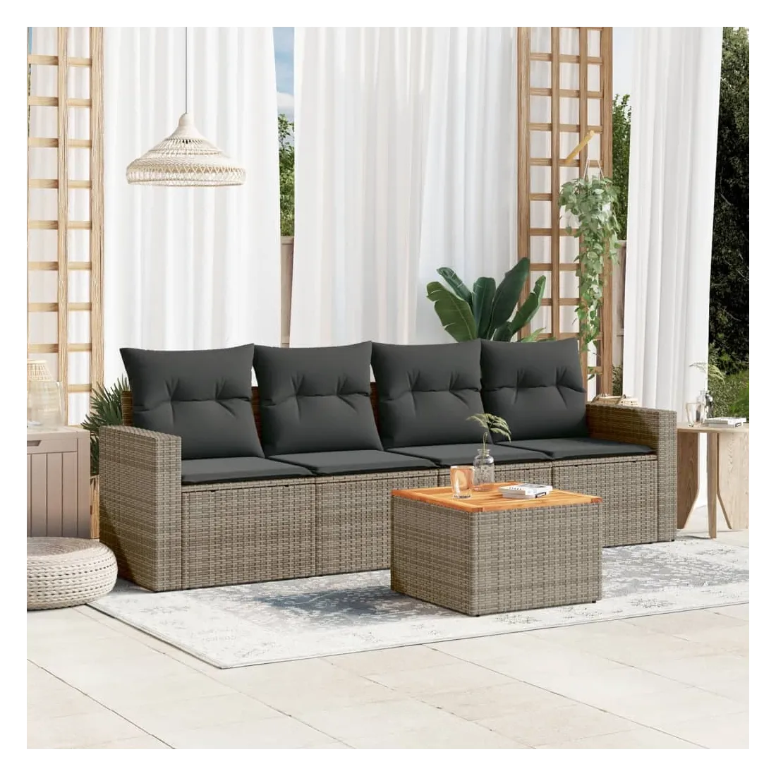 Cet ensemble de canapés de jardin est le complément parfait de votre arrière-cour, terrasse ou patio, offrant un espace confortable et accueillant pour discuter avec la famille et les amis ou simplement se détendre et profiter de l'extérieur. Matériau durable : la résine tressée, également connue sous le nom de poly rotin, est un matériau synthétique solide et nécessitant peu d'entretien qui ressemble au rotin naturel. Il est léger, facile à nettoyer et couramment utilisé pour les meubles d'extérieur en raison de sa durabilité et de ses propriétés de résistance aux intempéries.Expérience d'assise confortable : ce mobilier d'extérieur, doté de coussins épais, offre une expérience d'assise confortable.Dessus stable et facile à nettoyer : cette table de jardin a un dessus en bois d'acacia robuste, durable et facile à nettoyer avec un chiffon humide.Housse amovible et lavable : ces coussins de siège sont dotés de housses amovibles pour un lavage et un entretien faciles.Conception modulaire : cet ensemble de meubles d'extérieur a une conception modulaire, ce qui le rend complètement flexible et facile à déplacer, afin que vous puissiez créer un agencement de meubles d'extérieur personnalisé. Bon à savoir :Pour que vos meubles d'extérieur restent beaux, nous vous recommandons de les protéger avec une housse imperméable.