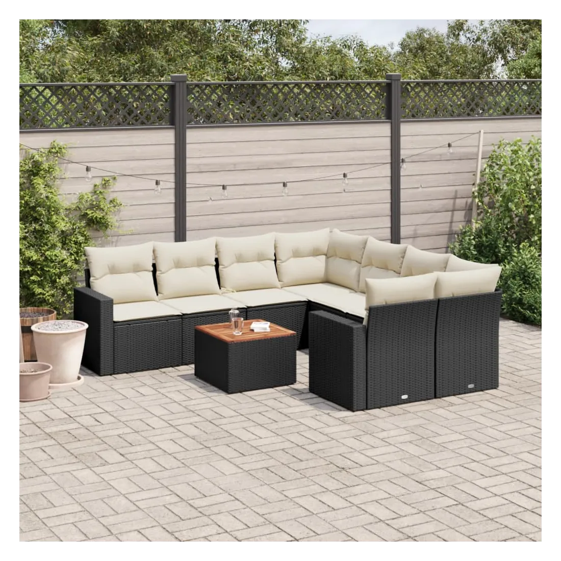 Cet ensemble de canapés de jardin est le complément parfait de votre arrière-cour, terrasse ou patio, offrant un espace confortable et accueillant pour discuter avec la famille et les amis ou simplement se détendre et profiter de l'extérieur. Matériau durable : la résine tressée, également connue sous le nom de poly rotin, est un matériau synthétique solide et nécessitant peu d'entretien qui ressemble au rotin naturel. Il est léger, facile à nettoyer et couramment utilisé pour les meubles d'extérieur en raison de sa durabilité et de ses propriétés de résistance aux intempéries.Expérience d'assise confortable : ce mobilier d'extérieur, doté de coussins épais, offre une expérience d'assise confortable.Dessus stable et facile à nettoyer : cette table de jardin a un dessus en bois d'acacia robuste, durable et facile à nettoyer avec un chiffon humide.Housse amovible et lavable : ces coussins de siège sont dotés de housses amovibles pour un lavage et un entretien faciles.Conception modulaire : cet ensemble de meubles d'extérieur a une conception modulaire, ce qui le rend complètement flexible et facile à déplacer, afin que vous puissiez créer un agencement de meubles d'extérieur personnalisé. Bon à savoir :Pour que vos meubles d'extérieur restent beaux, nous vous recommandons de les protéger avec une housse imperméable.