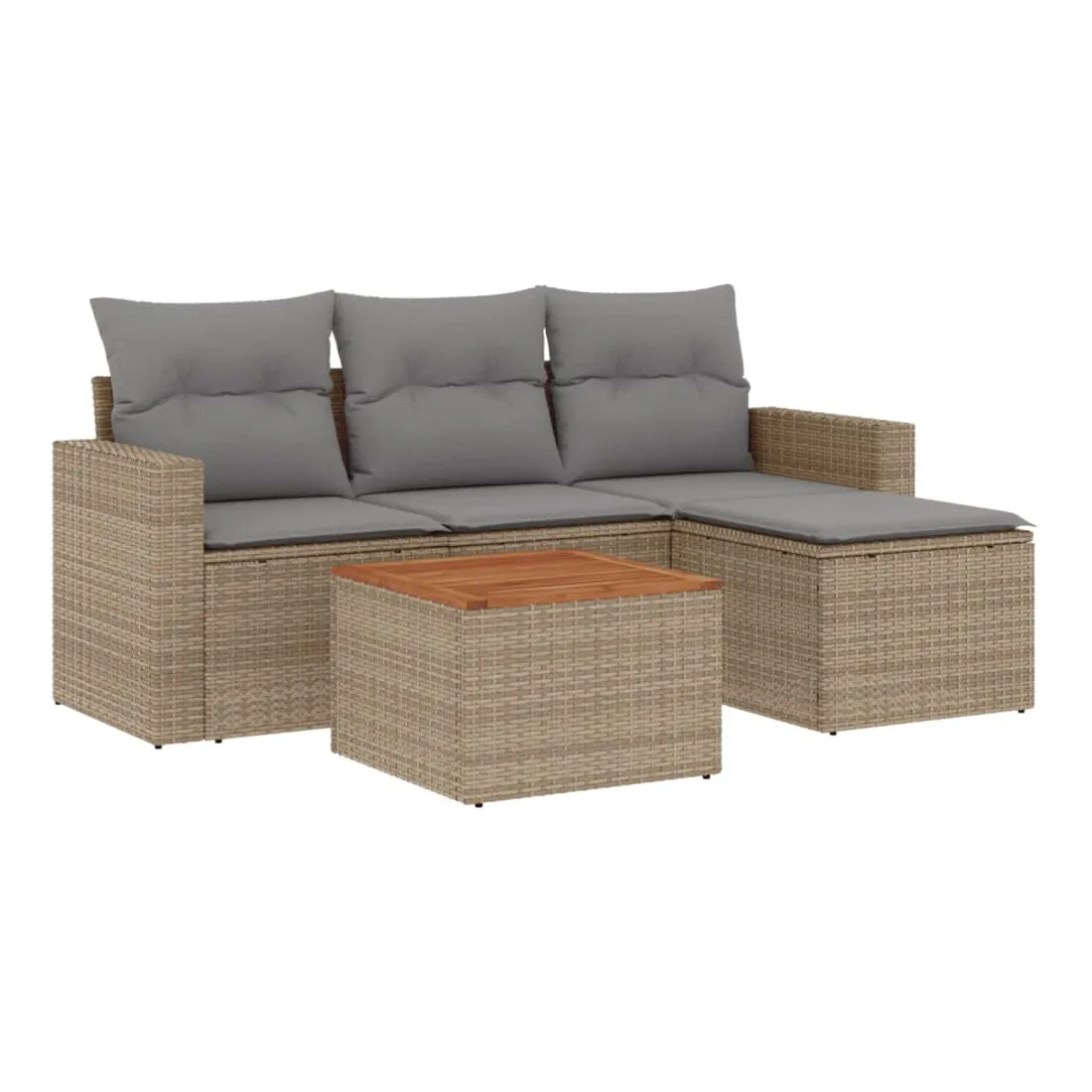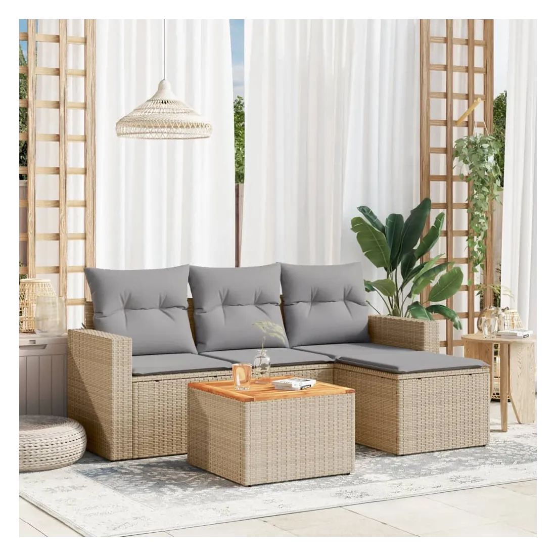 Cet ensemble de canapés de jardin est le complément parfait de votre arrière-cour, terrasse ou patio, offrant un espace confortable et accueillant pour discuter avec la famille et les amis ou simplement se détendre et profiter de l'extérieur. Matériau durable : la résine tressée, également connue sous le nom de poly rotin, est un matériau synthétique solide et nécessitant peu d'entretien qui ressemble au rotin naturel. Il est léger, facile à nettoyer et couramment utilisé pour les meubles d'extérieur en raison de sa durabilité et de ses propriétés de résistance aux intempéries.Expérience d'assise confortable : ce mobilier d'extérieur, doté de coussins épais, offre une expérience d'assise confortable.Dessus stable et facile à nettoyer : cette table de jardin a un dessus en bois d'acacia robuste, durable et facile à nettoyer avec un chiffon humide.Housse amovible et lavable : ces coussins de siège sont dotés de housses amovibles pour un lavage et un entretien faciles.Conception modulaire : cet ensemble de meubles d'extérieur a une conception modulaire, ce qui le rend complètement flexible et facile à déplacer, afin que vous puissiez créer un agencement de meubles d'extérieur personnalisé. Bon à savoir :Pour que vos meubles d'extérieur restent beaux, nous vous recommandons de les protéger avec une housse imperméable.