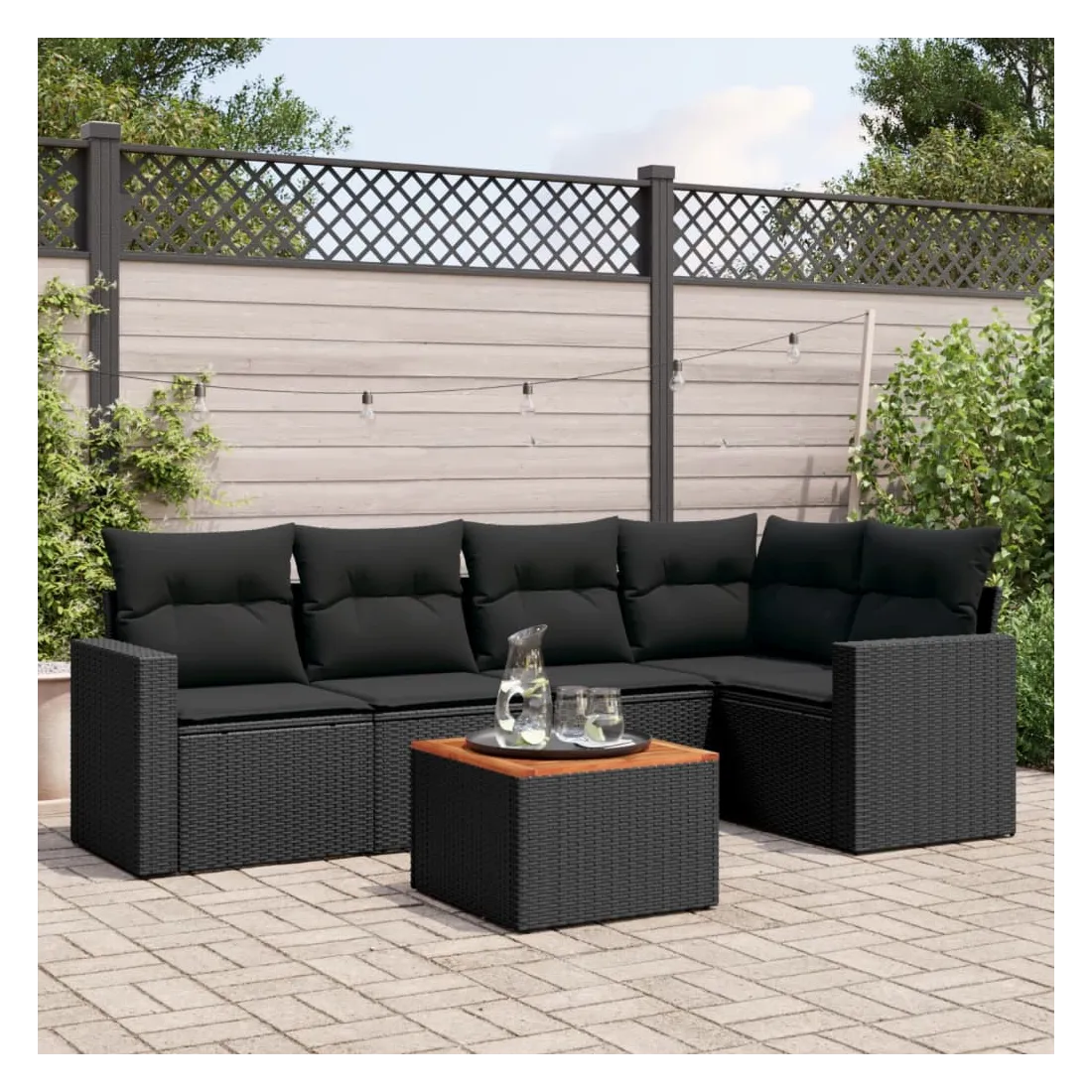 Salon de jardin 6 pcs avec coussins noir résine tressée
