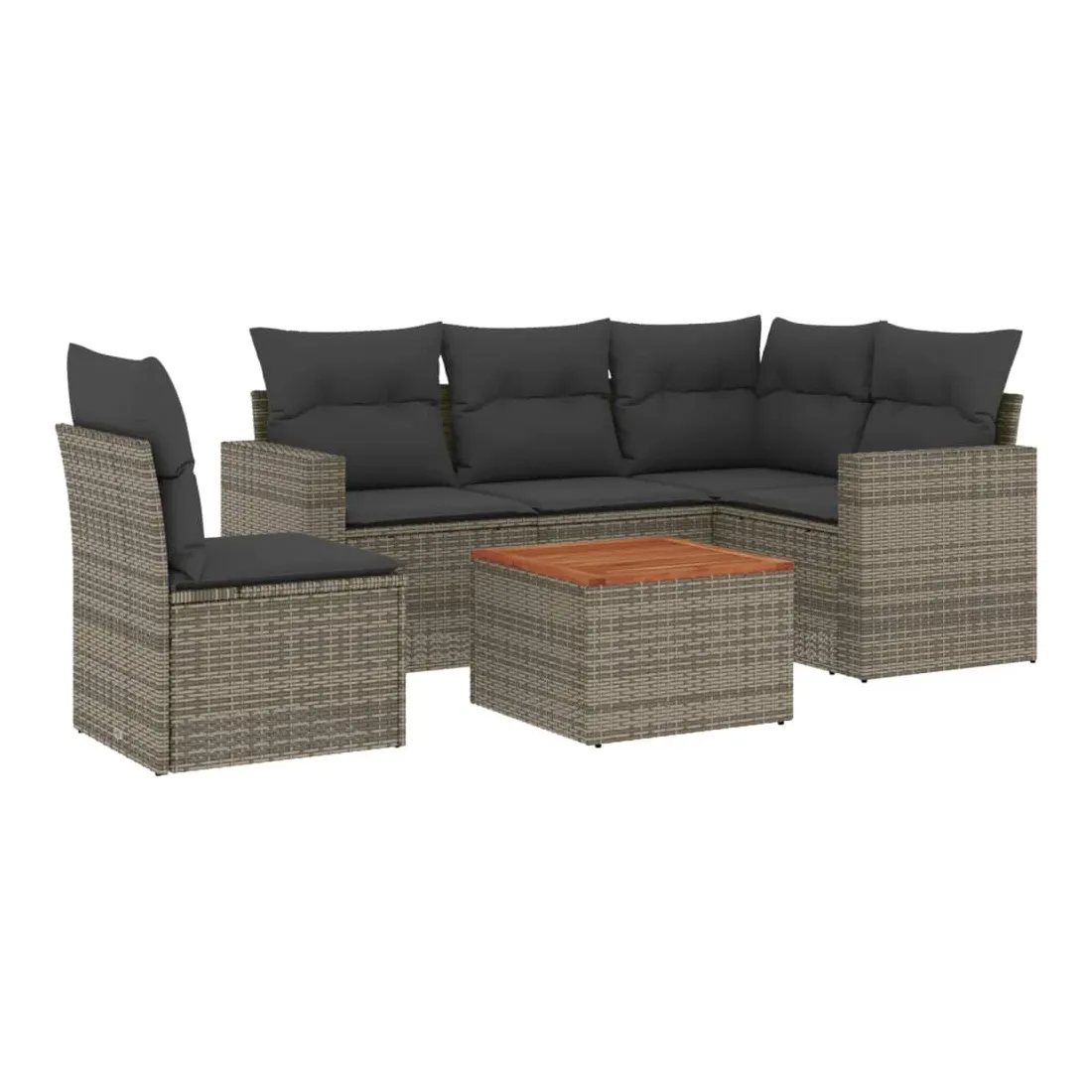 Salon de jardin 6 pcs avec coussins gris résine tressée