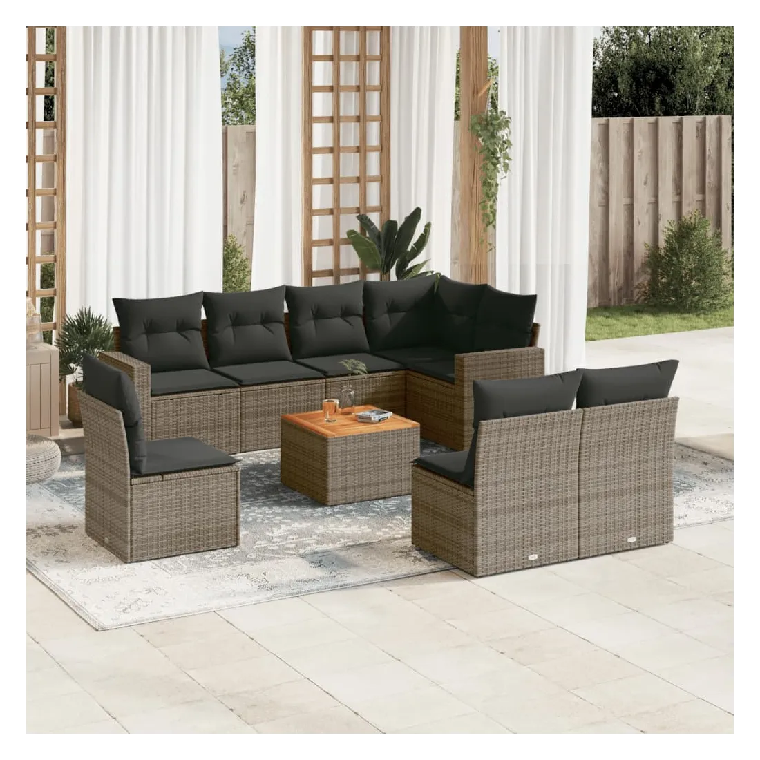 Cet ensemble de canapés de jardin est le complément parfait de votre arrière-cour, terrasse ou patio, offrant un espace confortable et accueillant pour discuter avec la famille et les amis ou simplement se détendre et profiter de l'extérieur. Matériau durable : la résine tressée, également connue sous le nom de poly rotin, est un matériau synthétique solide et nécessitant peu d'entretien qui ressemble au rotin naturel. Il est léger, facile à nettoyer et couramment utilisé pour les meubles d'extérieur en raison de sa durabilité et de ses propriétés de résistance aux intempéries.Expérience d'assise confortable : ce mobilier d'extérieur, doté de coussins épais, offre une expérience d'assise confortable.Dessus stable et facile à nettoyer : cette table de jardin a un dessus en bois d'acacia robuste, durable et facile à nettoyer avec un chiffon humide.Housse amovible et lavable : ces coussins de siège sont dotés de housses amovibles pour un lavage et un entretien faciles.Conception modulaire : cet ensemble de meubles d'extérieur a une conception modulaire, ce qui le rend complètement flexible et facile à déplacer, afin que vous puissiez créer un agencement de meubles d'extérieur personnalisé. Bon à savoir :Pour que vos meubles d'extérieur restent beaux, nous vous recommandons de les protéger avec une housse imperméable.