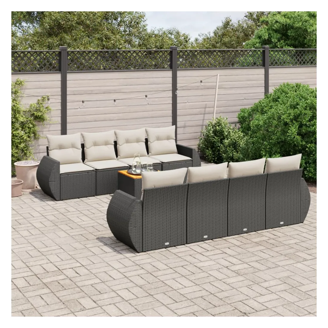 Cet ensemble de canapés de jardin est le complément parfait de votre arrière-cour, terrasse ou patio, offrant un espace confortable et accueillant pour discuter avec la famille et les amis ou simplement se détendre et profiter de l'extérieur. Matériau durable : la résine tressée, également connue sous le nom de poly rotin, est un matériau synthétique solide et nécessitant peu d'entretien qui ressemble au rotin naturel. Il est léger, facile à nettoyer et couramment utilisé pour les meubles d'extérieur en raison de sa durabilité et de ses propriétés de résistance aux intempéries.Dessus stable et facile à nettoyer : cette table de jardin a un dessus en bois d'acacia robuste, durable et facile à nettoyer avec un chiffon humide. Expérience d'assise confortable : ce mobilier d'extérieur, doté de coussins épais, offre une expérience d'assise confortable.Housse amovible et lavable : ces coussins de siège sont dotés de housses amovibles pour un lavage et un entretien faciles.Conception modulaire : cet ensemble de meubles d'extérieur a une conception modulaire, ce qui le rend complètement flexible et facile à déplacer, afin que vous puissiez créer un agencement de meubles d'extérieur personnalisé. Bon à savoir :Pour que vos meubles d'extérieur restent beaux, nous vous recommandons de les protéger avec une housse imperméable.