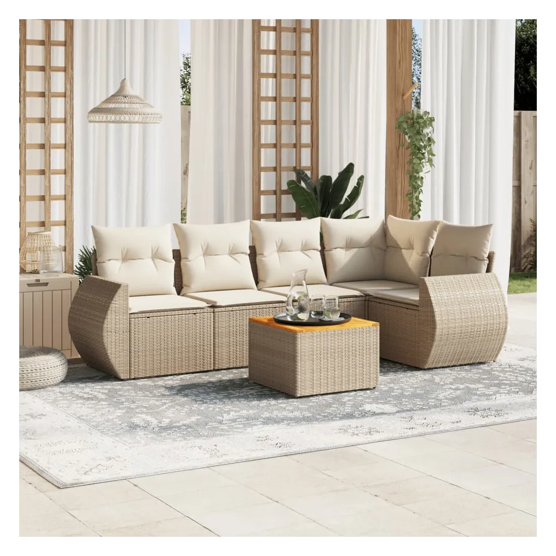 Cet ensemble de canapés de jardin est le complément parfait de votre arrière-cour, terrasse ou patio, offrant un espace confortable et accueillant pour discuter avec la famille et les amis ou simplement se détendre et profiter de l'extérieur. Matériau durable : la résine tressée, également connue sous le nom de poly rotin, est un matériau synthétique solide et nécessitant peu d'entretien qui ressemble au rotin naturel. Il est léger, facile à nettoyer et couramment utilisé pour les meubles d'extérieur en raison de sa durabilité et de ses propriétés de résistance aux intempéries.Dessus stable et facile à nettoyer : cette table de jardin a un dessus en bois d'acacia robuste, durable et facile à nettoyer avec un chiffon humide. Expérience d'assise confortable : ce mobilier d'extérieur, doté de coussins épais, offre une expérience d'assise confortable.Housse amovible et lavable : ces coussins de siège sont dotés de housses amovibles pour un lavage et un entretien faciles.Conception modulaire : cet ensemble de meubles d'extérieur a une conception modulaire, ce qui le rend complètement flexible et facile à déplacer, afin que vous puissiez créer un agencement de meubles d'extérieur personnalisé. Bon à savoir :Pour que vos meubles d'extérieur restent beaux, nous vous recommandons de les protéger avec une housse imperméable.