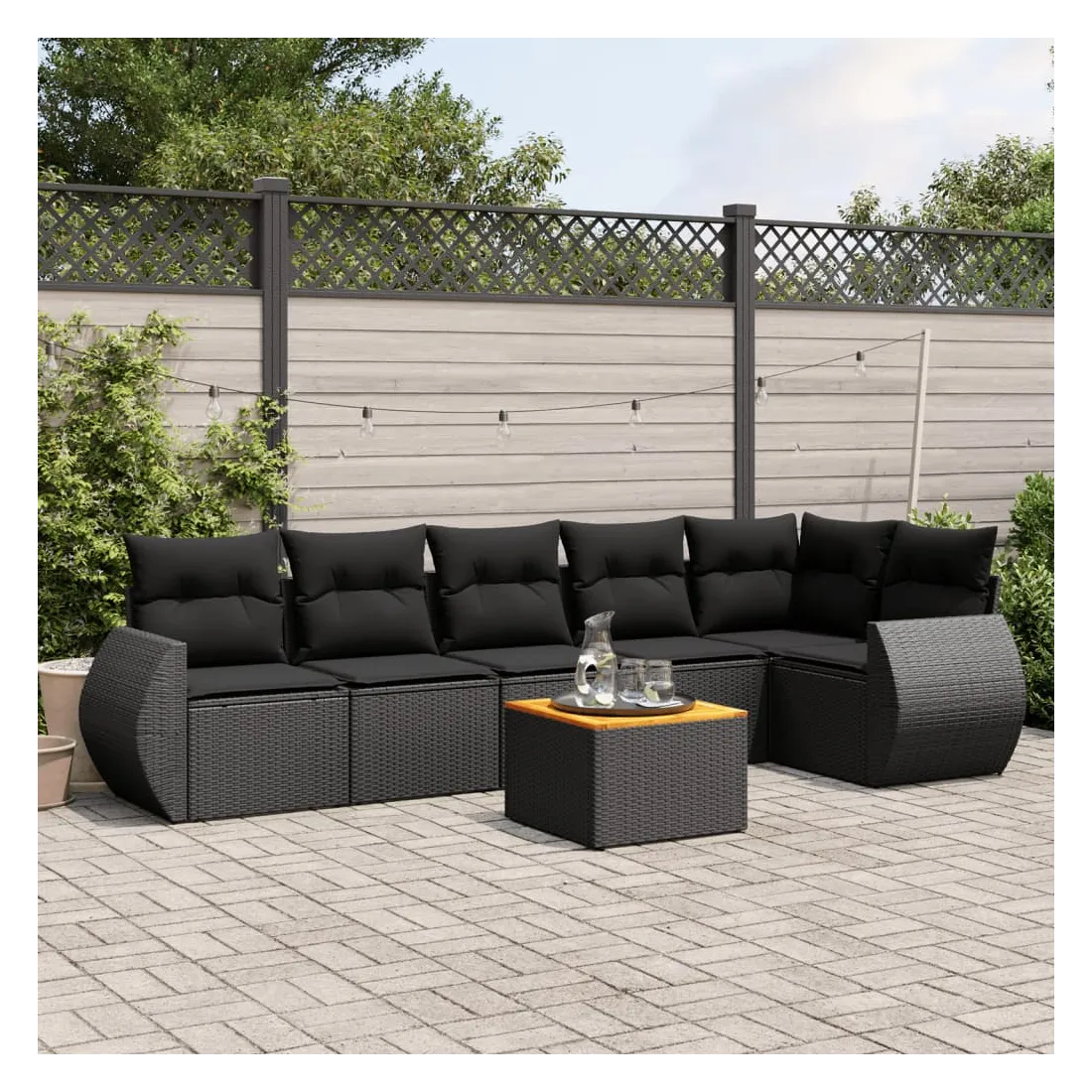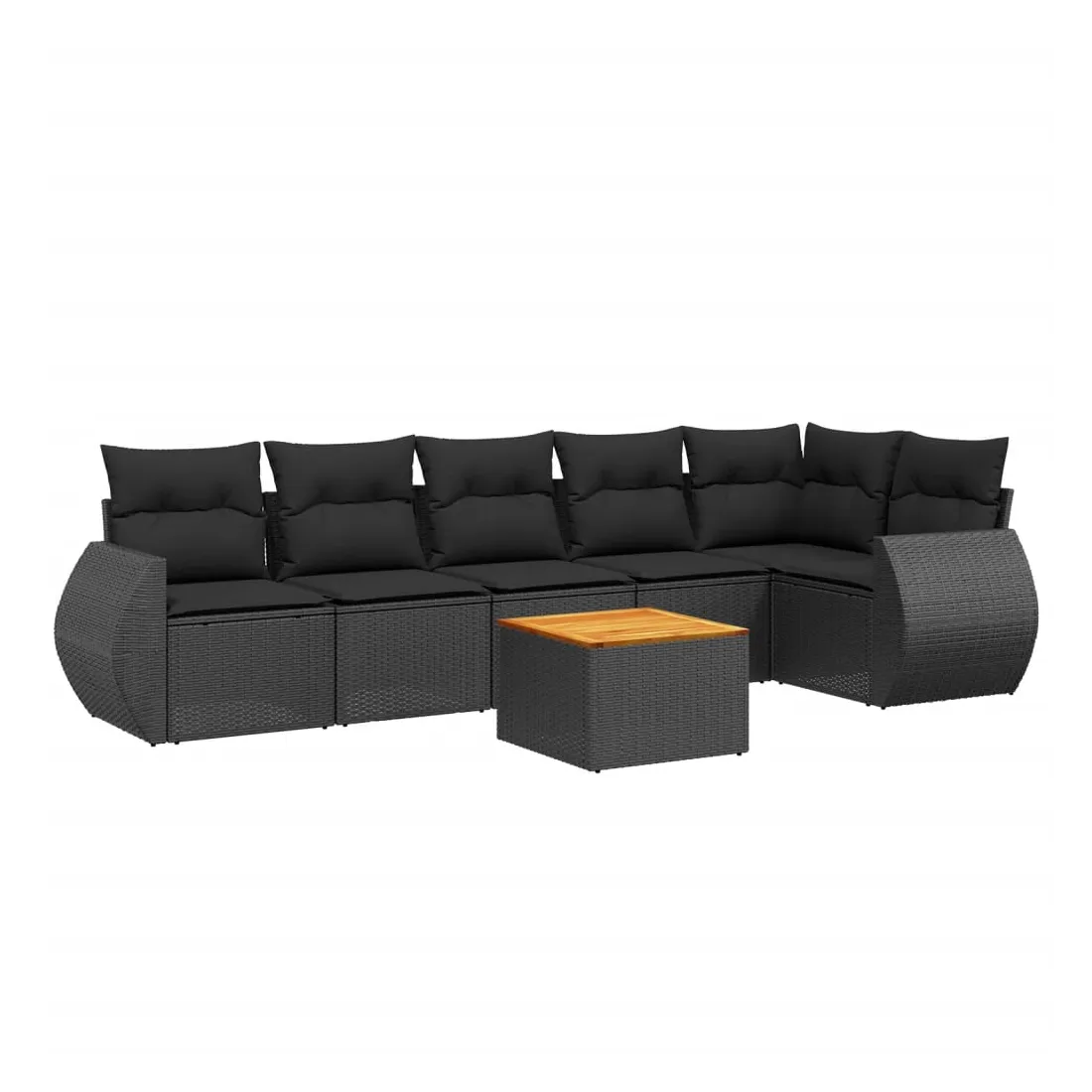 Salon de jardin 7 pcs avec coussins noir résine tressée
