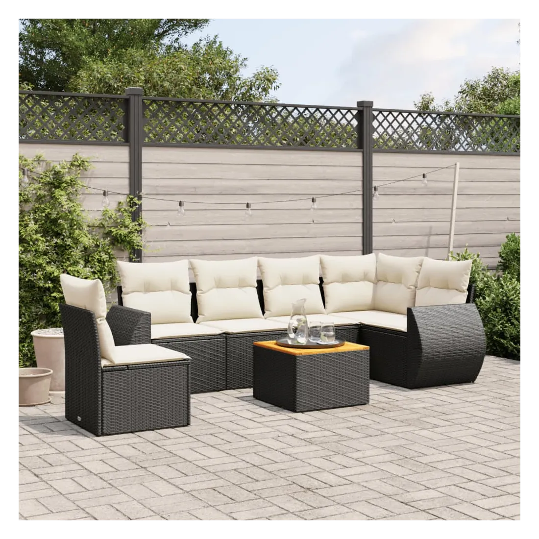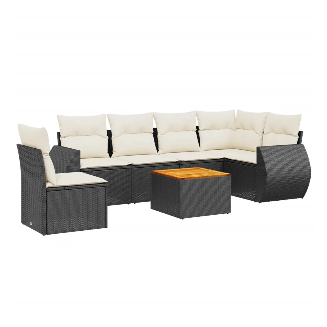 Salon de jardin 7 pcs avec coussins noir résine tressée