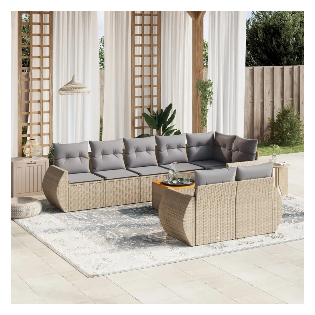 Salon de jardin avec coussins 9 pcs beige résine tressée
