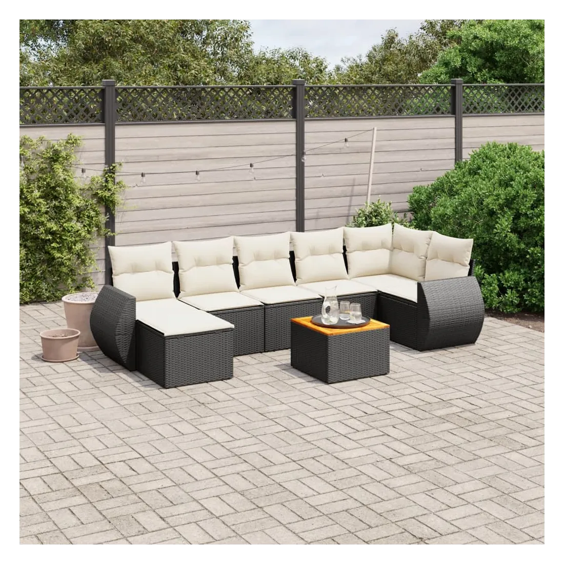 Salon de jardin 8 pcs avec coussins noir résine tressée