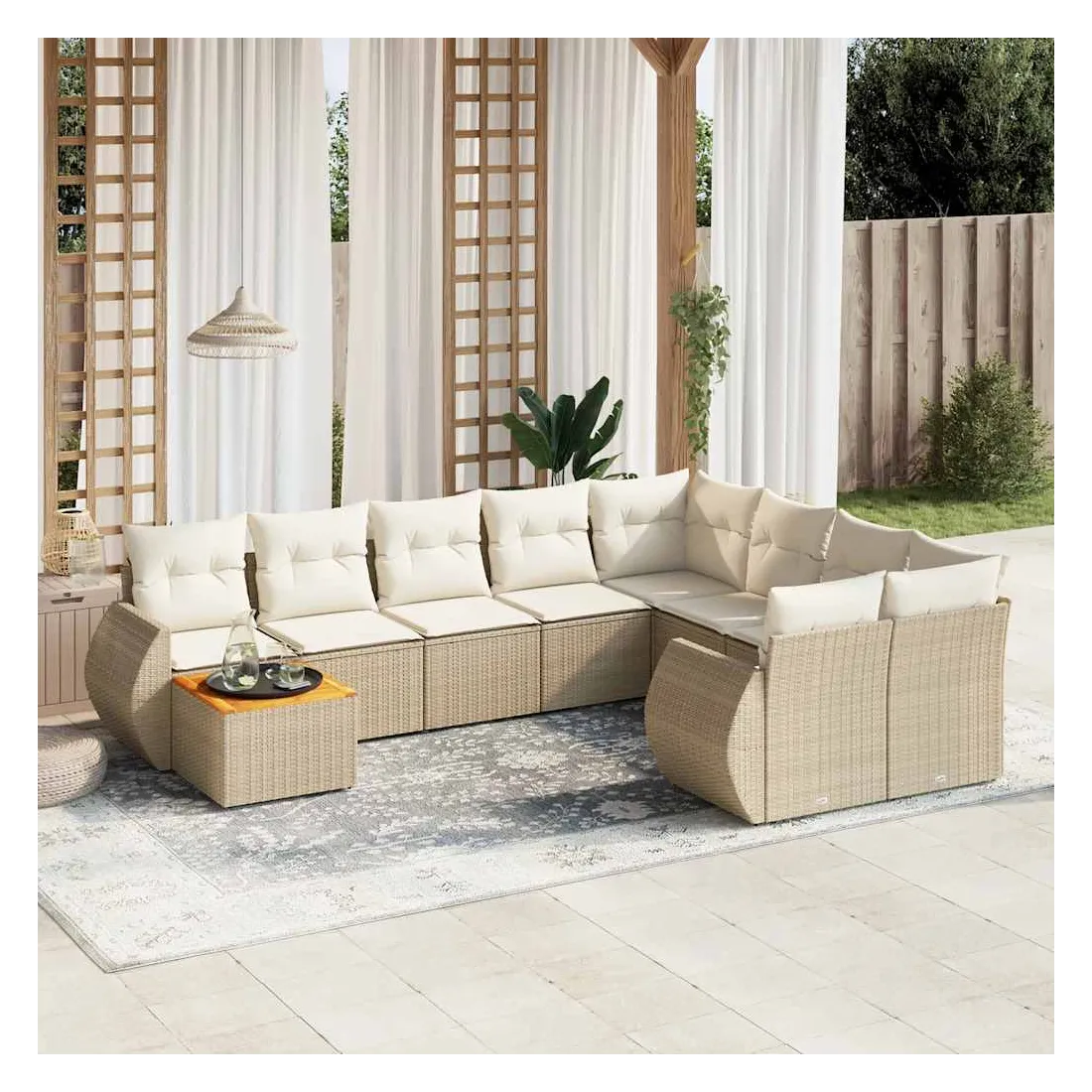 Salon de jardin avec coussins 10 pcs beige résine tressée