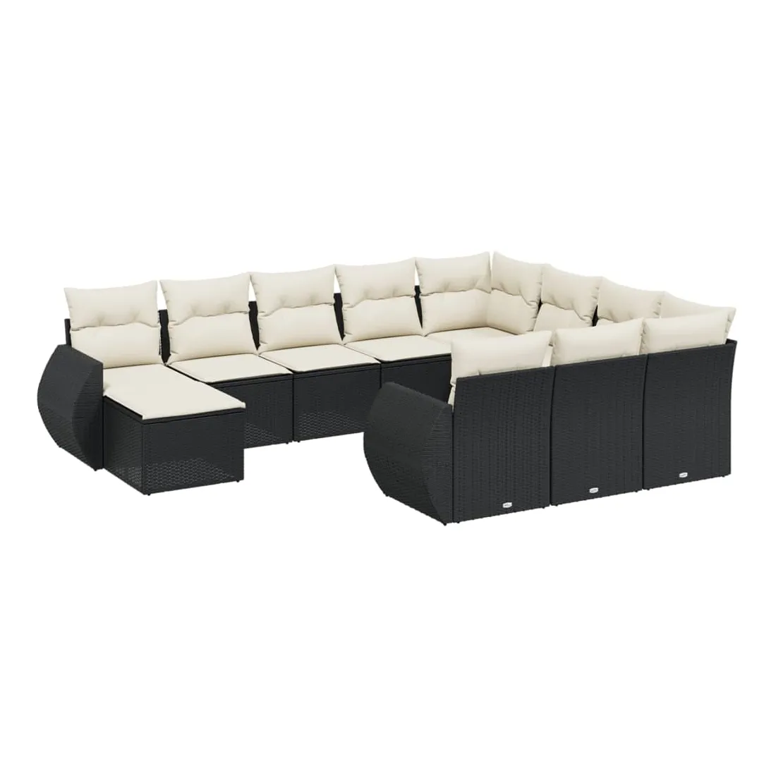Salon de jardin 11 pcs avec coussins noir résine tressée