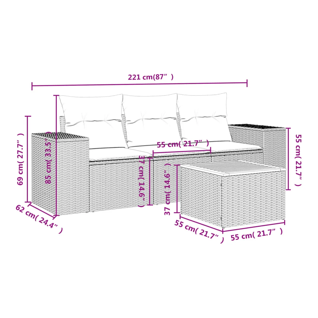 Cet ensemble de canapés de jardin est le complément parfait de votre arrière-cour, terrasse ou patio, offrant un espace confortable et accueillant pour discuter avec la famille et les amis ou simplement se détendre et profiter de l'extérieur. Matériau durable : la résine tressée, également connue sous le nom de poly rotin, est un matériau synthétique solide et nécessitant peu d'entretien qui ressemble au rotin naturel. Il est léger, facile à nettoyer et couramment utilisé pour les meubles d'extérieur en raison de sa durabilité et de ses propriétés de résistance aux intempéries.Dessus stable et facile à nettoyer : cette table de jardin a un dessus en bois d'acacia robuste, durable et facile à nettoyer avec un chiffon humide. Expérience d'assise confortable : ce mobilier d'extérieur, doté de coussins épais, offre une expérience d'assise confortable. Housse amovible et lavable : ces coussins de siège sont dotés de housses amovibles pour un lavage et un entretien faciles.Conception modulaire : cet ensemble de meubles d'extérieur a une conception modulaire, ce qui le rend complètement flexible et facile à déplacer, afin que vous puissiez créer un agencement de meubles d'extérieur personnalisé. Bon à savoir :Pour que vos meubles d'extérieur restent beaux, nous vous recommandons de les protéger avec une housse imperméable.