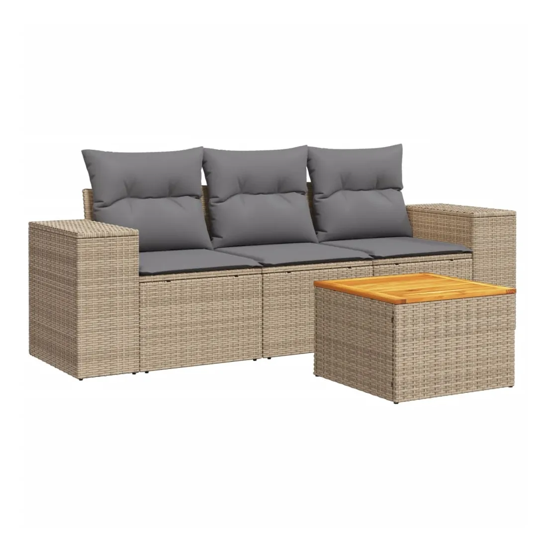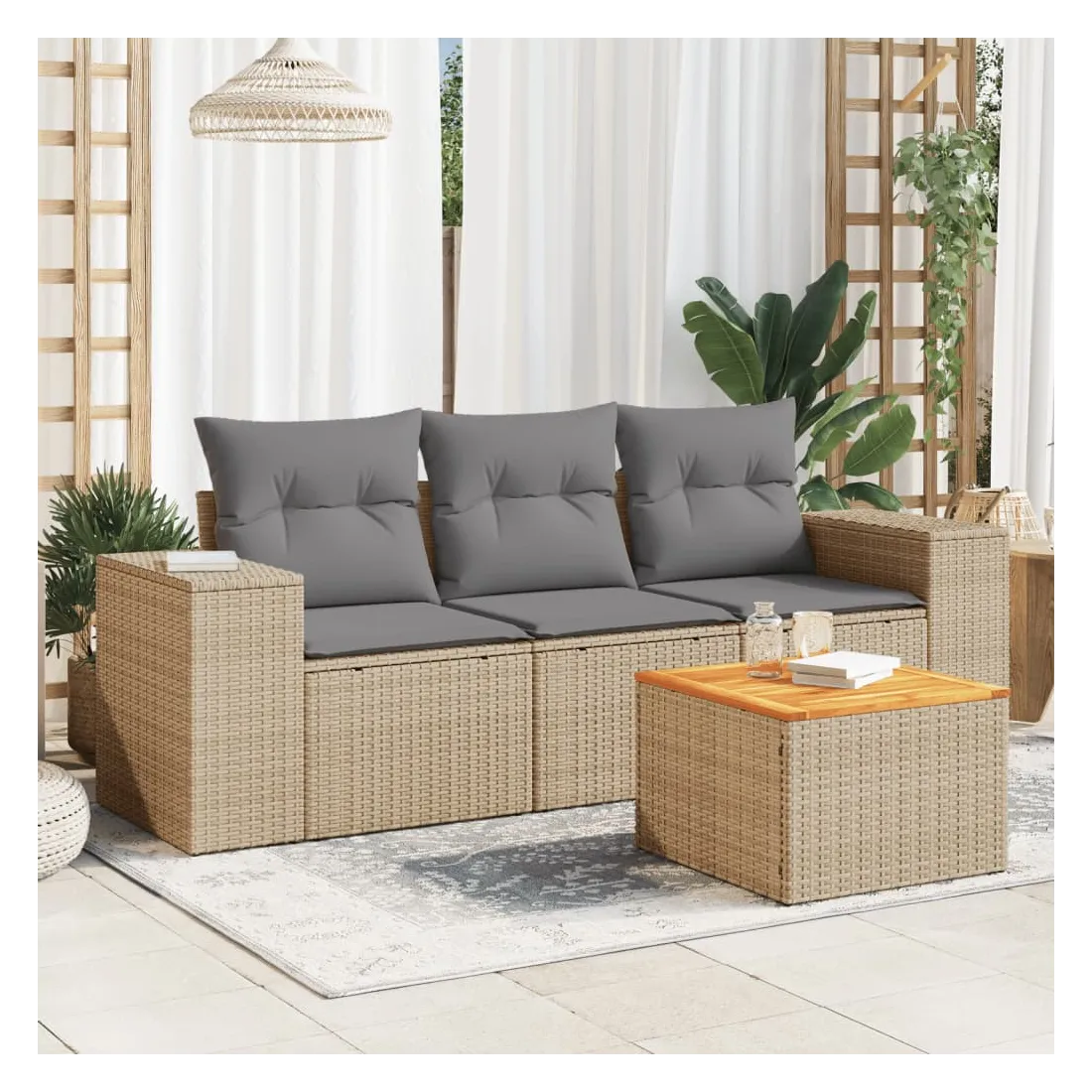 Cet ensemble de canapés de jardin est le complément parfait de votre arrière-cour, terrasse ou patio, offrant un espace confortable et accueillant pour discuter avec la famille et les amis ou simplement se détendre et profiter de l'extérieur. Matériau durable : la résine tressée, également connue sous le nom de poly rotin, est un matériau synthétique solide et nécessitant peu d'entretien qui ressemble au rotin naturel. Il est léger, facile à nettoyer et couramment utilisé pour les meubles d'extérieur en raison de sa durabilité et de ses propriétés de résistance aux intempéries.Dessus stable et facile à nettoyer : cette table de jardin a un dessus en bois d'acacia robuste, durable et facile à nettoyer avec un chiffon humide. Expérience d'assise confortable : ce mobilier d'extérieur, doté de coussins épais, offre une expérience d'assise confortable. Housse amovible et lavable : ces coussins de siège sont dotés de housses amovibles pour un lavage et un entretien faciles.Conception modulaire : cet ensemble de meubles d'extérieur a une conception modulaire, ce qui le rend complètement flexible et facile à déplacer, afin que vous puissiez créer un agencement de meubles d'extérieur personnalisé. Bon à savoir :Pour que vos meubles d'extérieur restent beaux, nous vous recommandons de les protéger avec une housse imperméable.