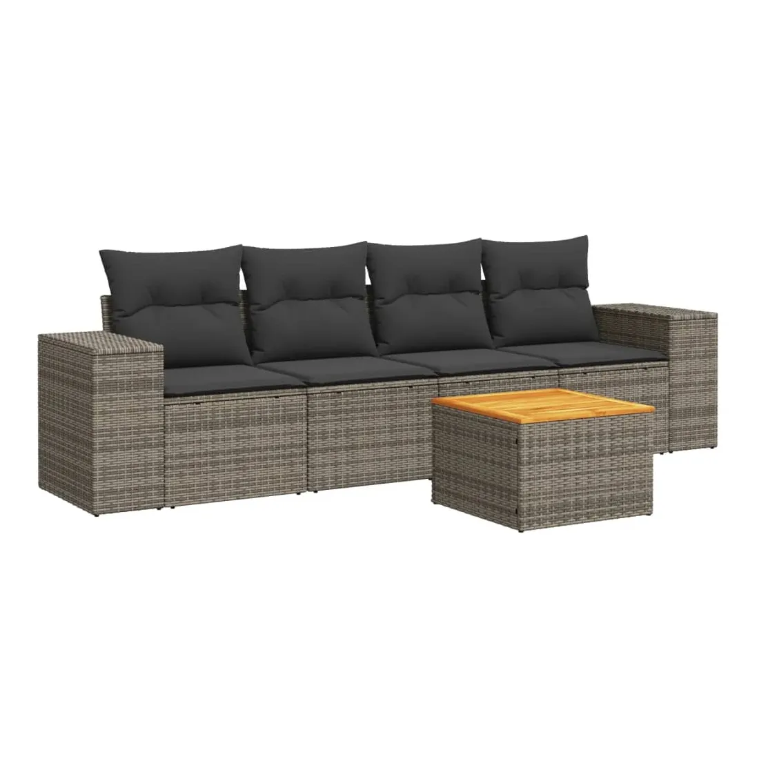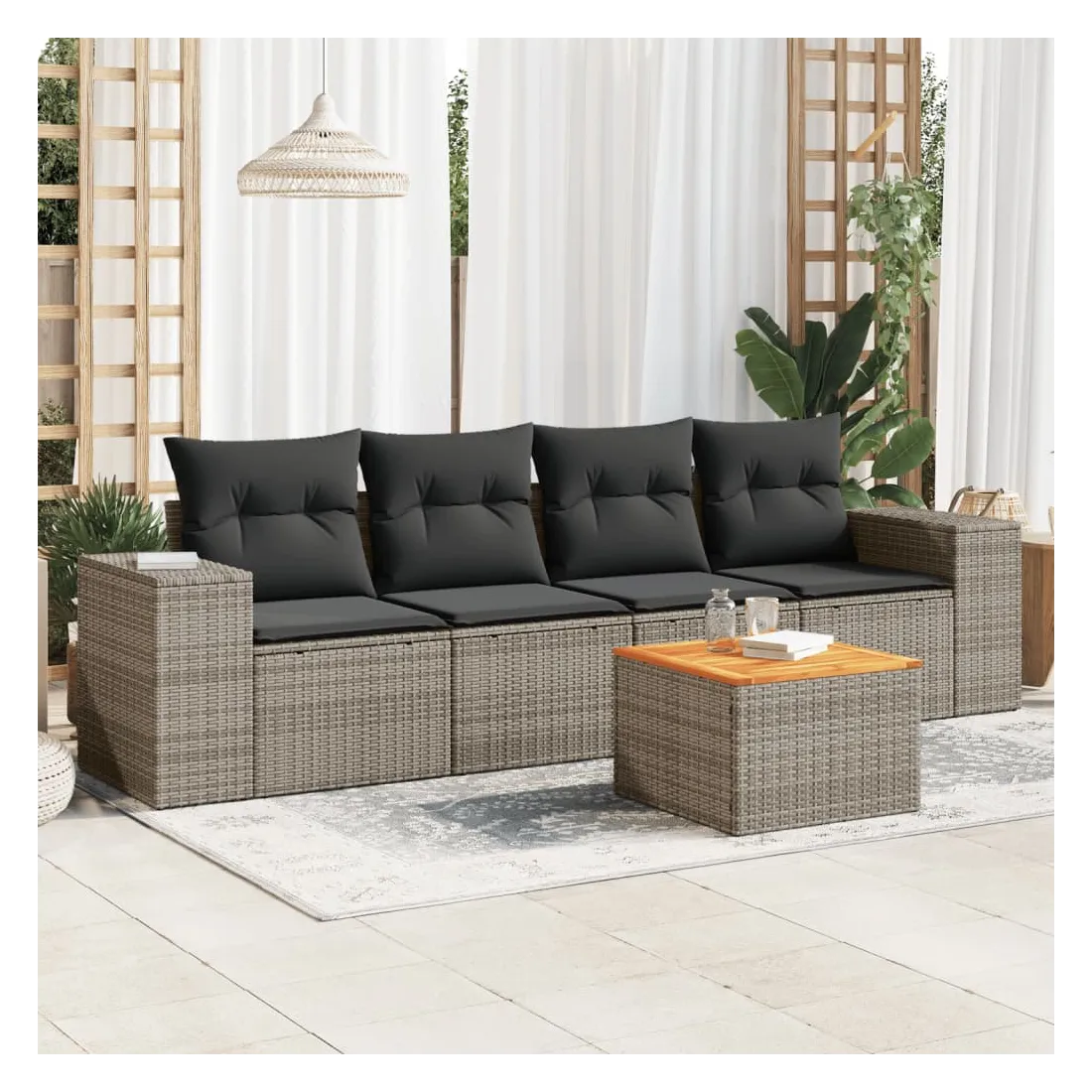 Cet ensemble de canapés de jardin est le complément parfait de votre arrière-cour, terrasse ou patio, offrant un espace confortable et accueillant pour discuter avec la famille et les amis ou simplement se détendre et profiter de l'extérieur. Matériau durable : la résine tressée, également connue sous le nom de poly rotin, est un matériau synthétique solide et nécessitant peu d'entretien qui ressemble au rotin naturel. Il est léger, facile à nettoyer et couramment utilisé pour les meubles d'extérieur en raison de sa durabilité et de ses propriétés de résistance aux intempéries.Dessus stable et facile à nettoyer : cette table de jardin a un dessus en bois d'acacia robuste, durable et facile à nettoyer avec un chiffon humide. Expérience d'assise confortable : ce mobilier d'extérieur, doté de coussins épais, offre une expérience d'assise confortable. Housse amovible et lavable : ces coussins de siège sont dotés de housses amovibles pour un lavage et un entretien faciles.Conception modulaire : cet ensemble de meubles d'extérieur a une conception modulaire, ce qui le rend complètement flexible et facile à déplacer, afin que vous puissiez créer un agencement de meubles d'extérieur personnalisé. Bon à savoir :Pour que vos meubles d'extérieur restent beaux, nous vous recommandons de les protéger avec une housse imperméable.