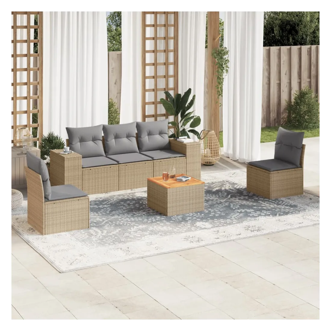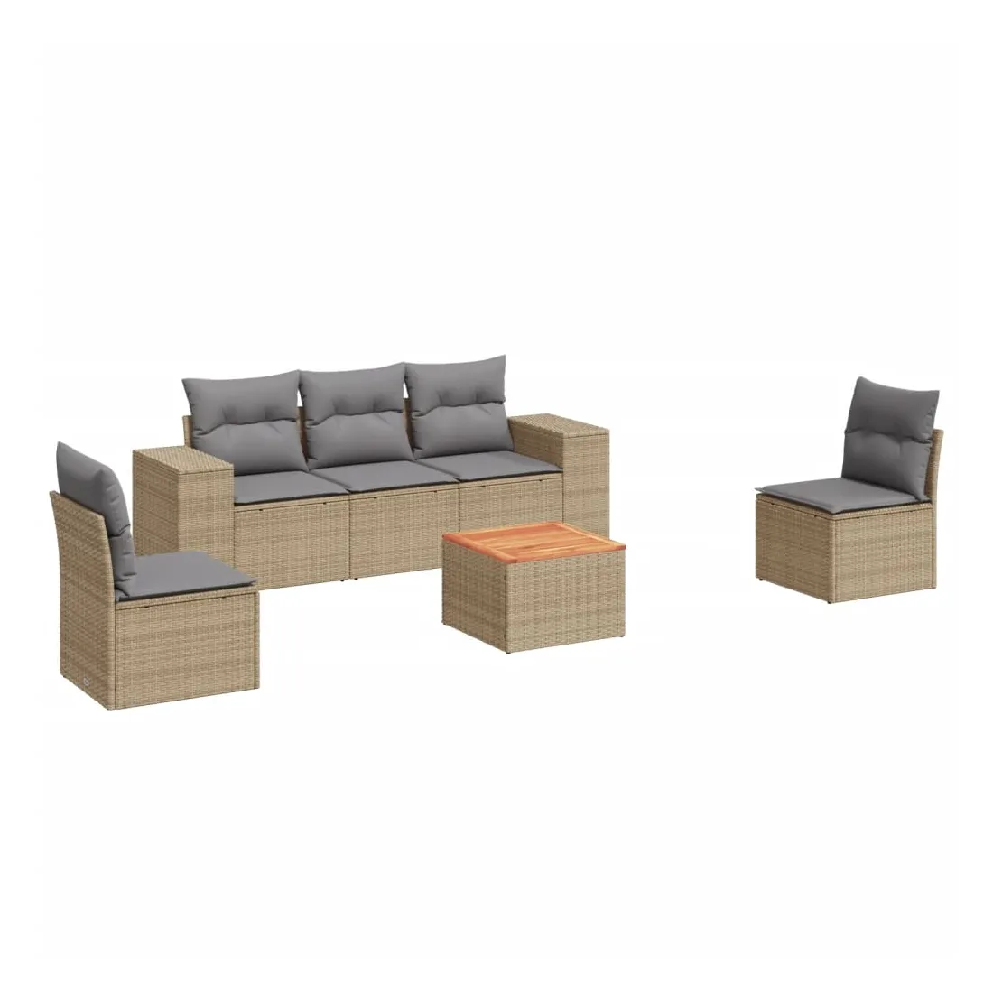 Cet ensemble de canapés de jardin est le complément parfait de votre arrière-cour, terrasse ou patio, offrant un espace confortable et accueillant pour discuter avec la famille et les amis ou simplement se détendre et profiter de l'extérieur. Matériau durable : la résine tressée, également connue sous le nom de poly rotin, est un matériau synthétique solide et nécessitant peu d'entretien qui ressemble au rotin naturel. Il est léger, facile à nettoyer et couramment utilisé pour les meubles d'extérieur en raison de sa durabilité et de ses propriétés de résistance aux intempéries.Dessus stable et facile à nettoyer : cette table de jardin a un dessus en bois d'acacia robuste, durable et facile à nettoyer avec un chiffon humide. Expérience d'assise confortable : ce mobilier d'extérieur, doté de coussins épais, offre une expérience d'assise confortable. Housse amovible et lavable : ces coussins de siège sont dotés de housses amovibles pour un lavage et un entretien faciles.Conception modulaire : cet ensemble de meubles d'extérieur a une conception modulaire, ce qui le rend complètement flexible et facile à déplacer, afin que vous puissiez créer un agencement de meubles d'extérieur personnalisé. Bon à savoir :Pour que vos meubles d'extérieur restent beaux, nous vous recommandons de les protéger avec une housse imperméable.