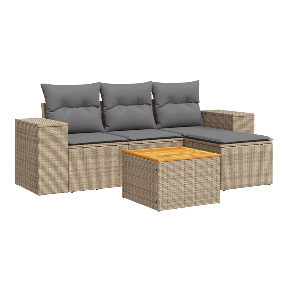 Cet ensemble de canapés de jardin est le complément parfait de votre arrière-cour, terrasse ou patio, offrant un espace confortable et accueillant pour discuter avec la famille et les amis ou simplement se détendre et profiter de l'extérieur. Matériau durable : la résine tressée, également connue sous le nom de poly rotin, est un matériau synthétique solide et nécessitant peu d'entretien qui ressemble au rotin naturel. Il est léger, facile à nettoyer et couramment utilisé pour les meubles d'extérieur en raison de sa durabilité et de ses propriétés de résistance aux intempéries.Dessus stable et facile à nettoyer : cette table de jardin a un dessus en bois d'acacia robuste, durable et facile à nettoyer avec un chiffon humide. Expérience d'assise confortable : ce mobilier d'extérieur, doté de coussins épais, offre une expérience d'assise confortable. Housse amovible et lavable : ces coussins de siège sont dotés de housses amovibles pour un lavage et un entretien faciles.Conception modulaire : cet ensemble de meubles d'extérieur a une conception modulaire, ce qui le rend complètement flexible et facile à déplacer, afin que vous puissiez créer un agencement de meubles d'extérieur personnalisé. Bon à savoir :Pour que vos meubles d'extérieur restent beaux, nous vous recommandons de les protéger avec une housse imperméable.