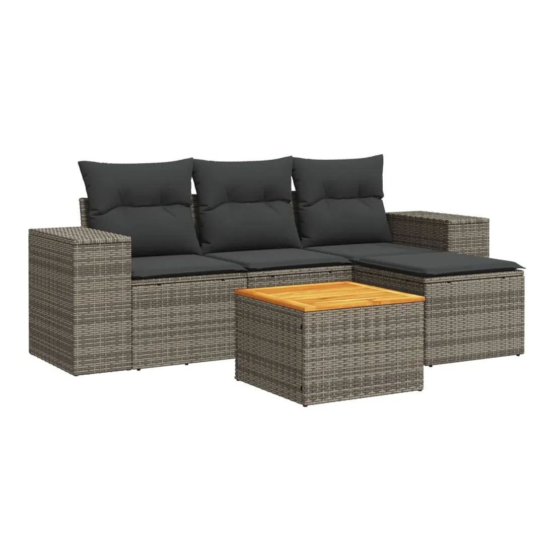 Cet ensemble de canapés de jardin est le complément parfait de votre arrière-cour, terrasse ou patio, offrant un espace confortable et accueillant pour discuter avec la famille et les amis ou simplement se détendre et profiter de l'extérieur. Matériau durable : la résine tressée, également connue sous le nom de poly rotin, est un matériau synthétique solide et nécessitant peu d'entretien qui ressemble au rotin naturel. Il est léger, facile à nettoyer et couramment utilisé pour les meubles d'extérieur en raison de sa durabilité et de ses propriétés de résistance aux intempéries.Dessus stable et facile à nettoyer : cette table de jardin a un dessus en bois d'acacia robuste, durable et facile à nettoyer avec un chiffon humide. Expérience d'assise confortable : ce mobilier d'extérieur, doté de coussins épais, offre une expérience d'assise confortable. Housse amovible et lavable : ces coussins de siège sont dotés de housses amovibles pour un lavage et un entretien faciles.Conception modulaire : cet ensemble de meubles d'extérieur a une conception modulaire, ce qui le rend complètement flexible et facile à déplacer, afin que vous puissiez créer un agencement de meubles d'extérieur personnalisé. Bon à savoir :Pour que vos meubles d'extérieur restent beaux, nous vous recommandons de les protéger avec une housse imperméable.