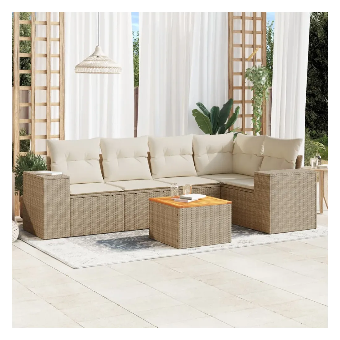 Salon de jardin avec coussins 6 pcs beige résine tressée