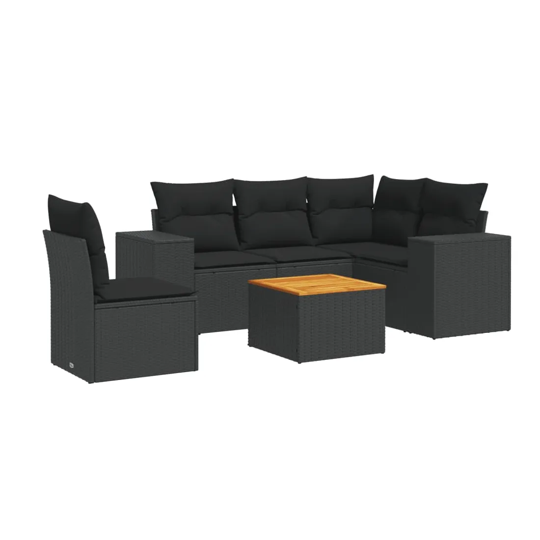 Salon de jardin 6 pcs avec coussins noir résine tressée