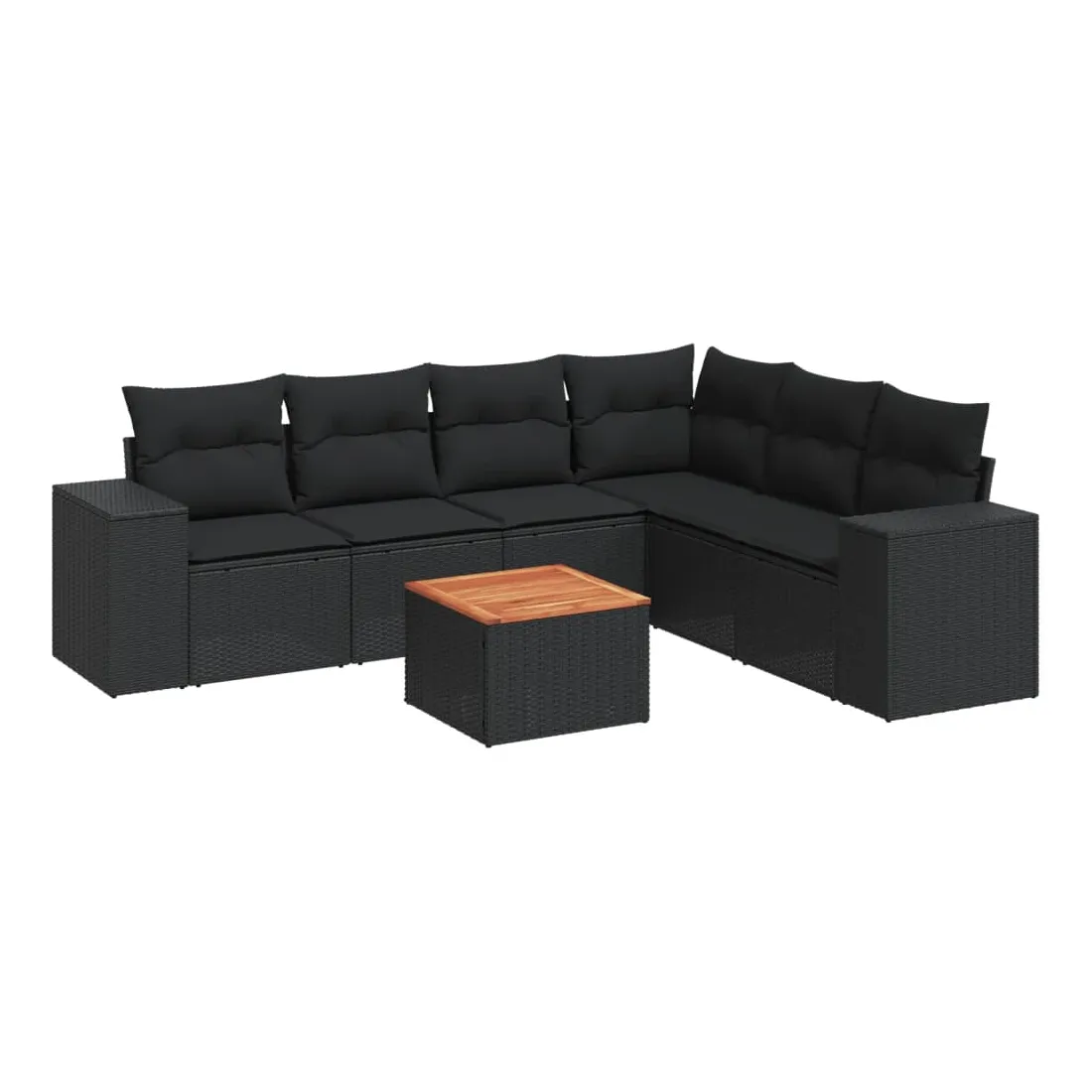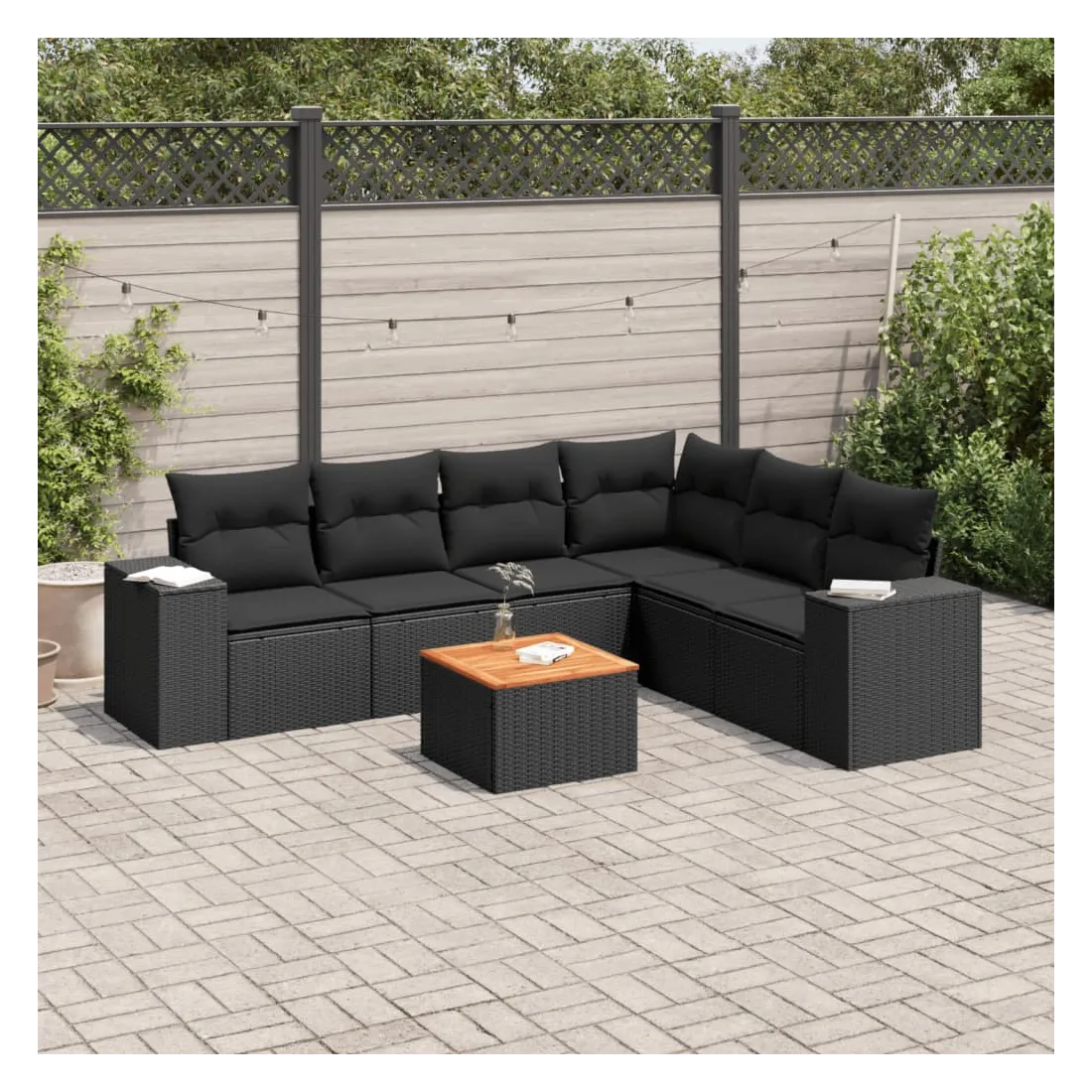Salon de jardin 7 pcs avec coussins noir résine tressée