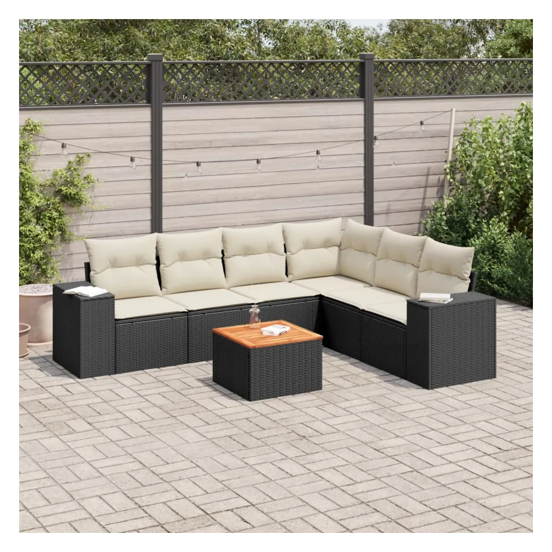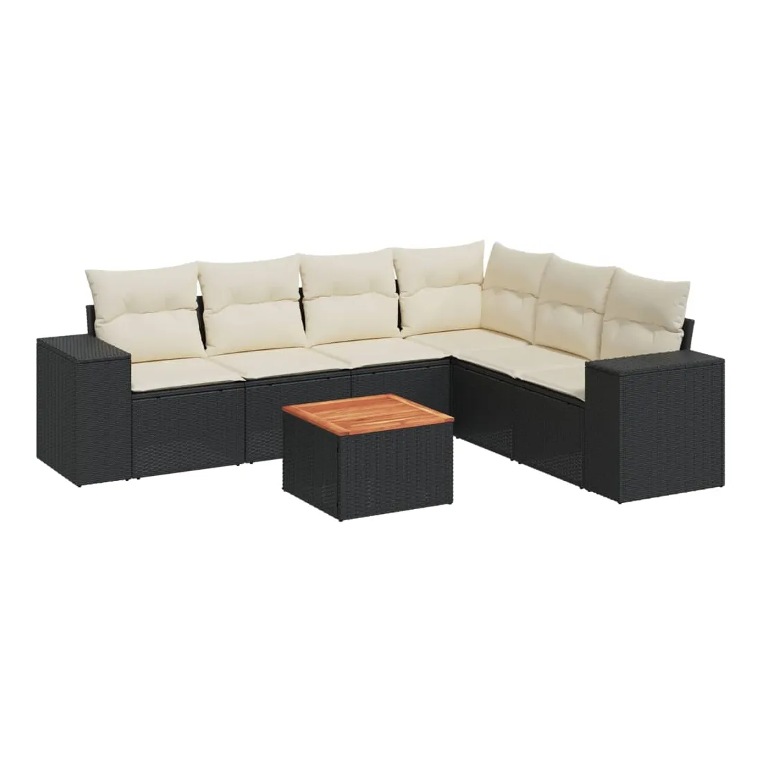 Salon de jardin 7 pcs avec coussins noir résine tressée