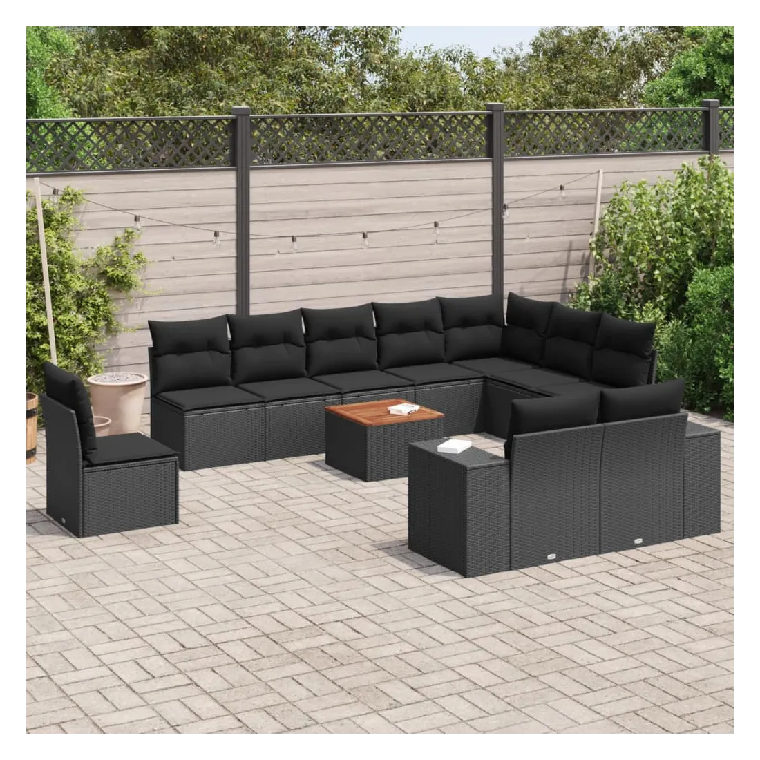 Cet ensemble de canapés de jardin est le complément parfait de votre arrière-cour, terrasse ou patio, offrant un espace confortable et accueillant pour discuter avec la famille et les amis ou simplement se détendre et profiter de l'extérieur. Matériau durable : la résine tressée, également connue sous le nom de poly rotin, est un matériau synthétique solide et nécessitant peu d'entretien qui ressemble au rotin naturel. Il est léger, facile à nettoyer et couramment utilisé pour les meubles d'extérieur en raison de sa durabilité et de ses propriétés de résistance aux intempéries.Dessus stable et facile à nettoyer : cette table de jardin a un dessus en bois d'acacia robuste, durable et facile à nettoyer avec un chiffon humide. Expérience d'assise confortable : ce mobilier d'extérieur, doté de coussins épais, offre une expérience d'assise confortable. Housse amovible et lavable : ces coussins de siège sont dotés de housses amovibles pour un lavage et un entretien faciles.Conception modulaire : cet ensemble de meubles d'extérieur a une conception modulaire, ce qui le rend complètement flexible et facile à déplacer, afin que vous puissiez créer un agencement de meubles d'extérieur personnalisé. Bon à savoir :Pour que vos meubles d'extérieur restent beaux, nous vous recommandons de les protéger avec une housse imperméable.